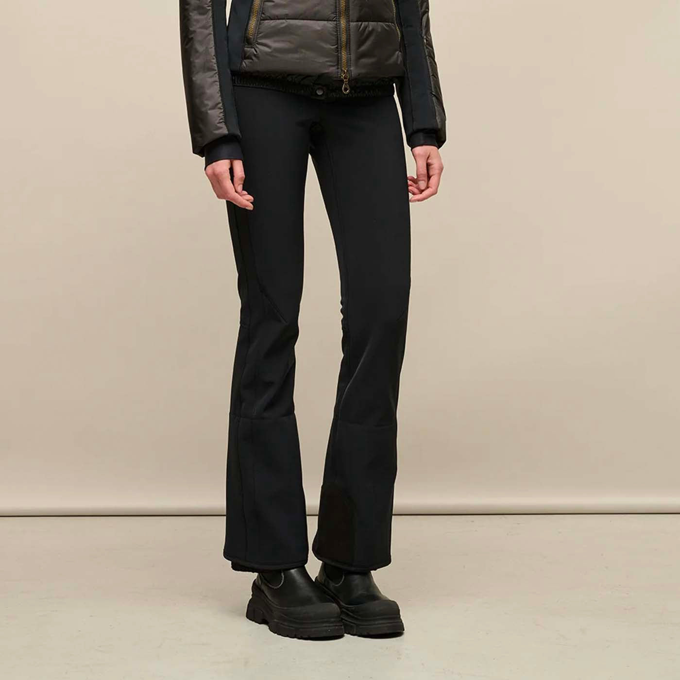 A soft, warming microfleece lining provides next-to-skin comfort, while ergonomically shaped knees enhance freedom of movement on the slopes. The slightly higher waistband delivers a secure, flattering fit, reinforced with safety buttons for added stability during more dynamic skiing. The subtly flared leg and integrated snow guard make it easy to step in and out of ski boots, ensuring a smooth, functional fit. Even after long days on the mountain, these jet pants retain their structure, breathability, and exceptional comfort.