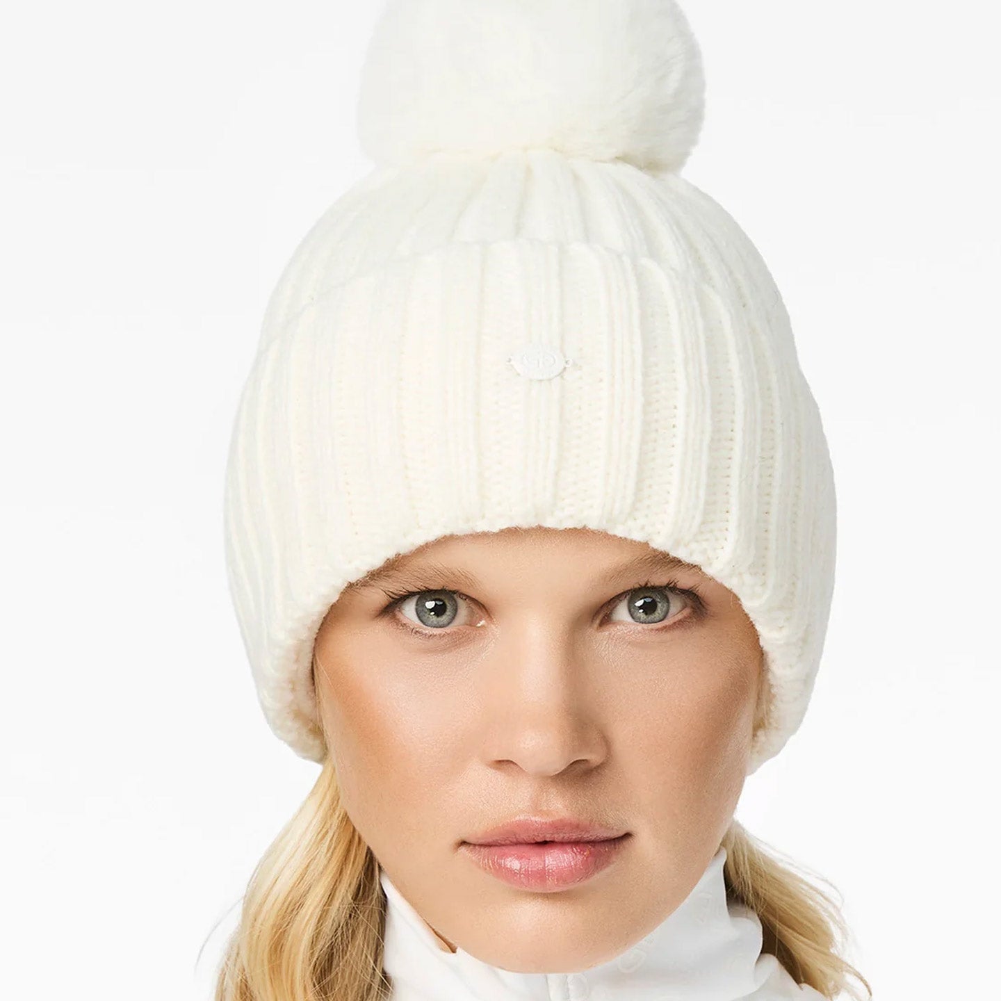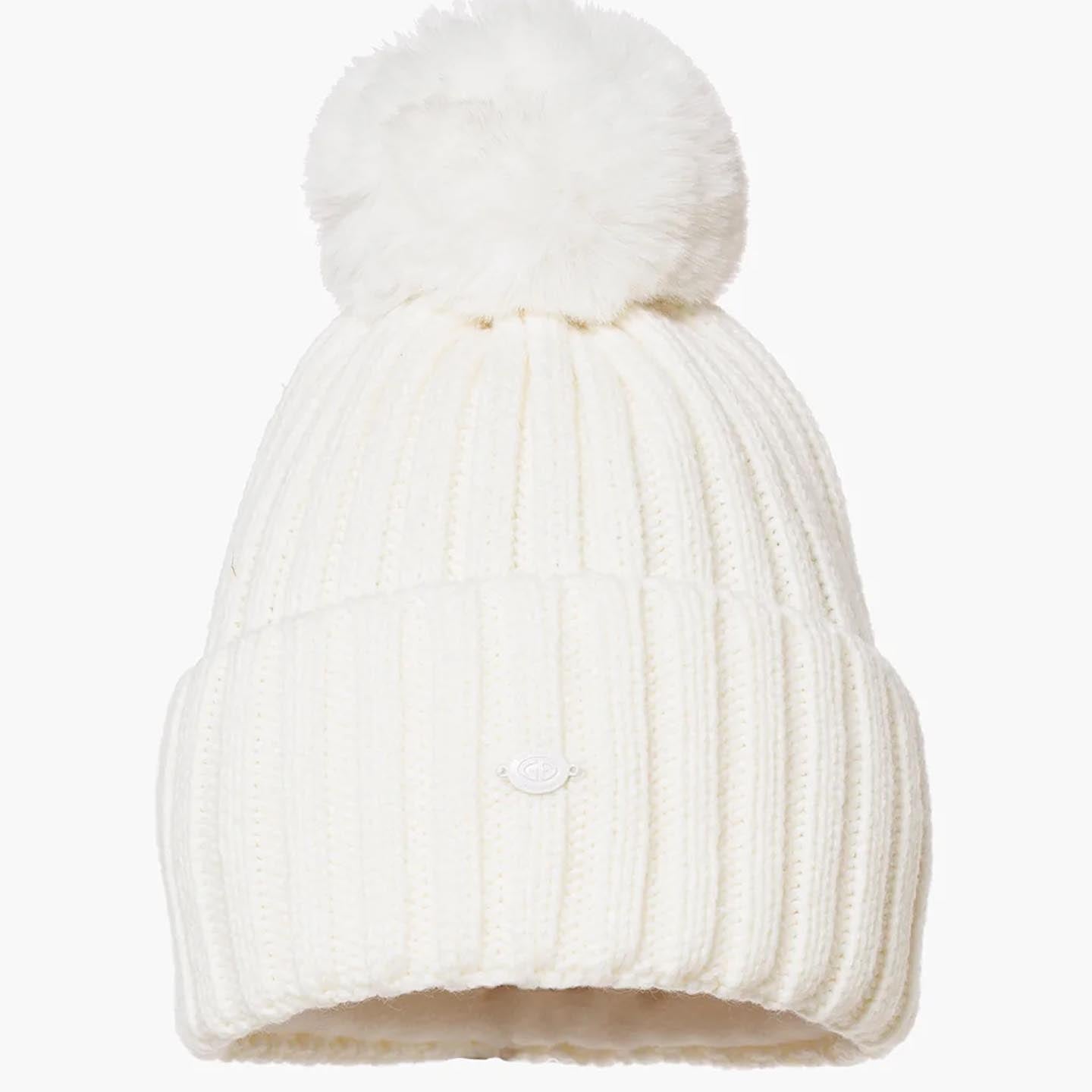 A cosy winter essential, this chunky knit beanie features a 2×2 rib construction with a fold-over band for extra warmth and structure. The inside is lined with a soft polar fleece band for added insulation and comfort, while the plush faux fur pompon adds a playful, elevated finish. Completed with a metal brand label at the front and a woven label at the back seam.