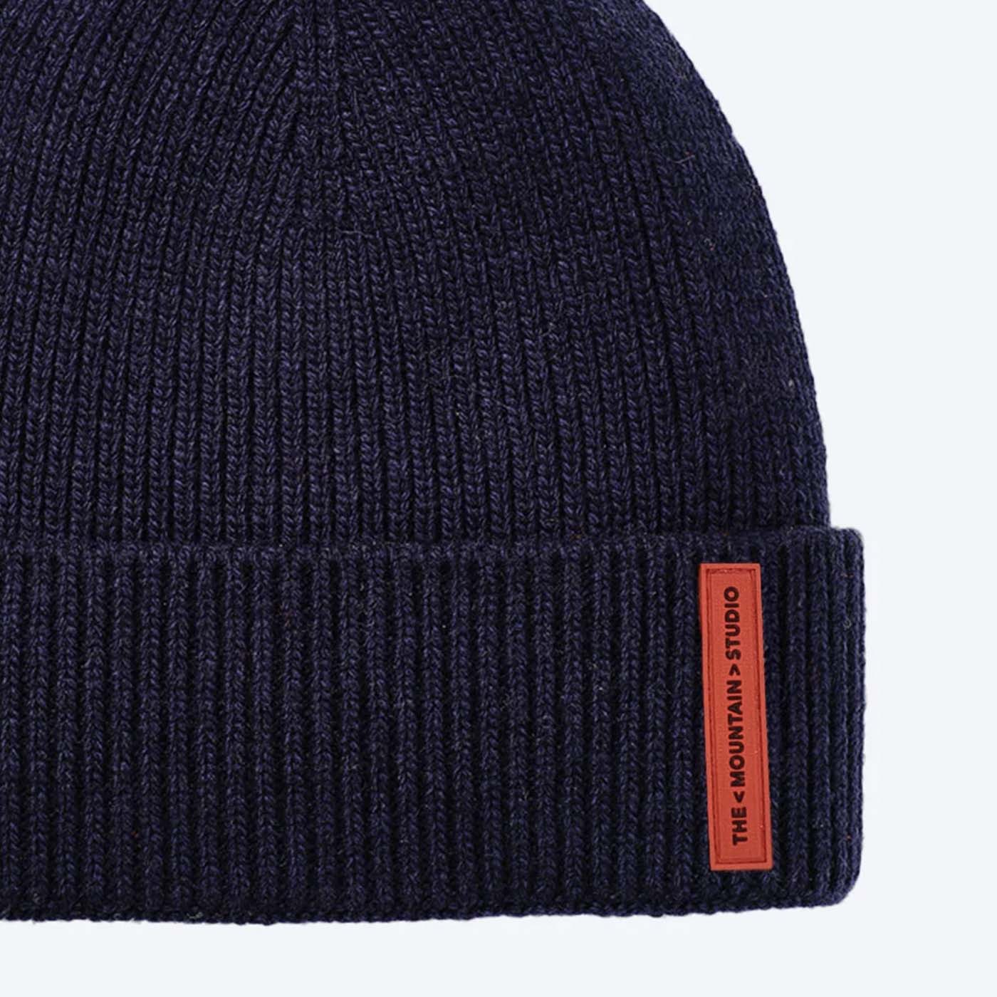 Ribbed beanie with a wide cuff, crafted from soft wool knit for warmth and comfort. Features a silicone The Mountain Studio logo patch on the front for a stylish, branded touch.