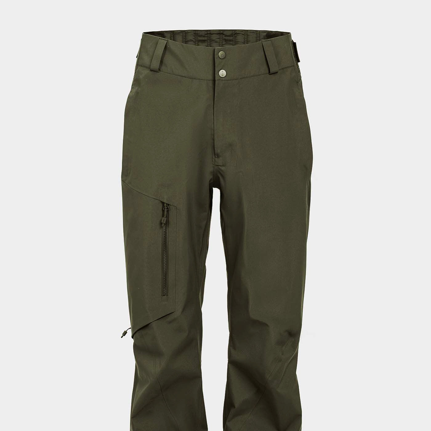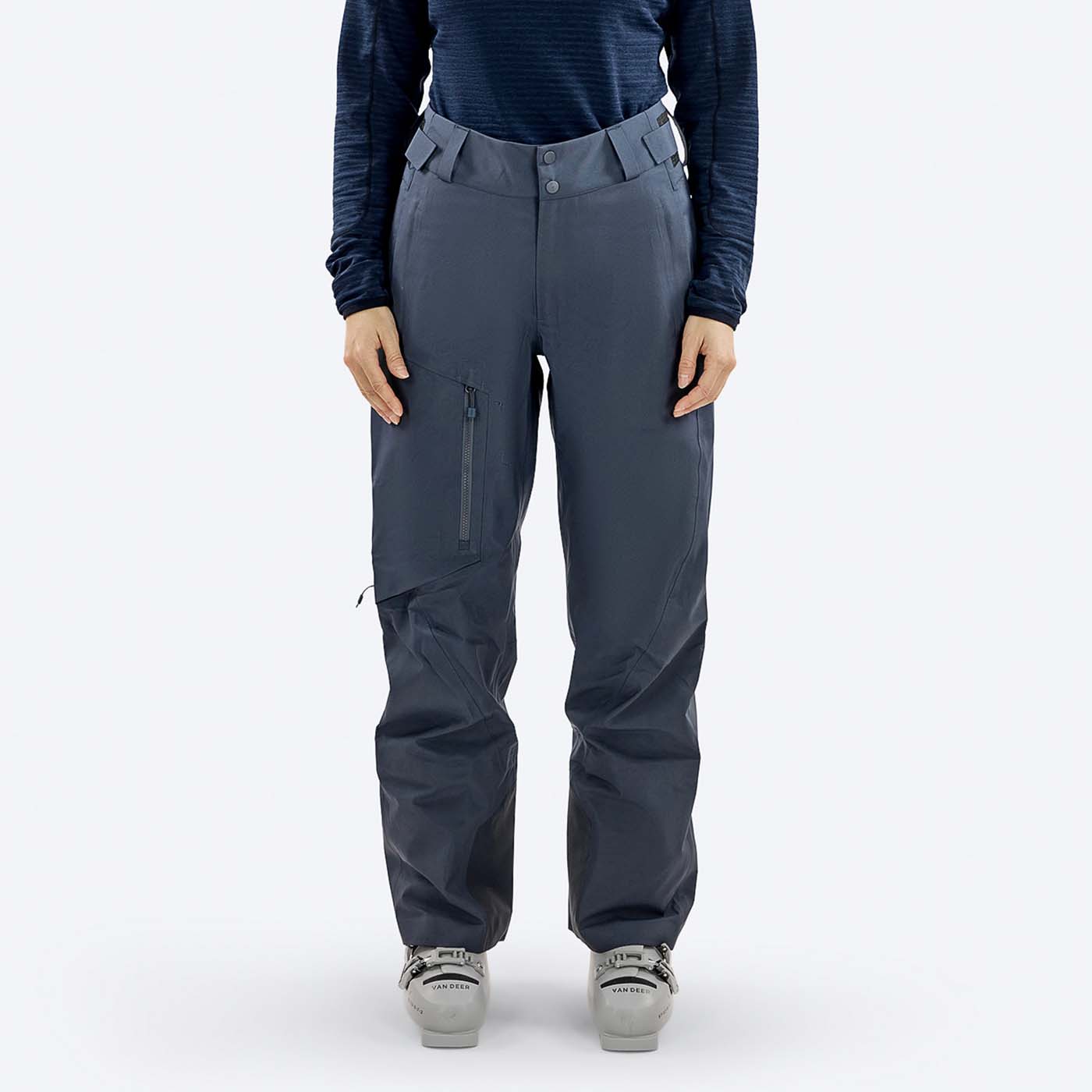 Functional mountain-ready storage includes two hand pockets and a large leg pocket for easy access to essentials. Large ventilation zippers allow quick airflow adjustment when hiking or on warm spring days. The adjustable waistband features a thin, flexible Dupont Sorona insulation panel for extra warmth and comfort at your lower back.