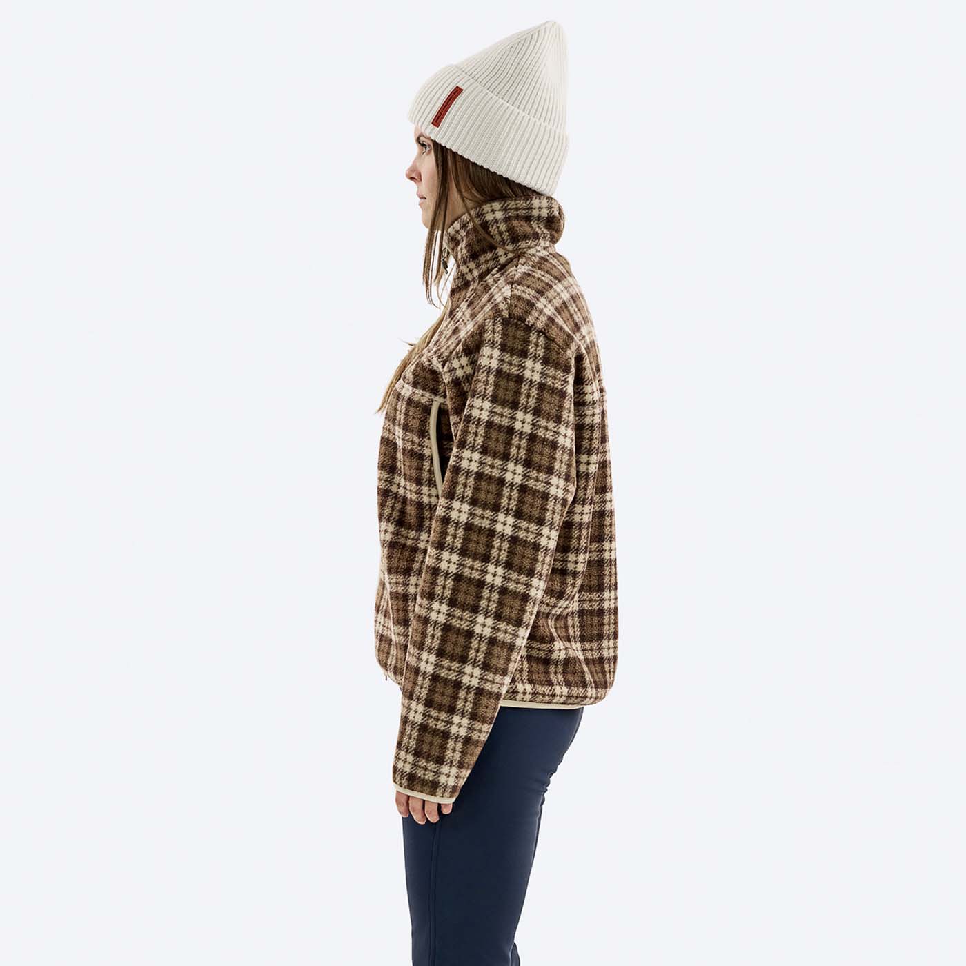 This women’s soft pile jacket crafted from a soft wool-and-acrylic blend for exceptional comfort and warmth. Perfect as a standalone layer on chilly days, for relaxing after a long day in the mountains, or worn under a shell jacket for an instant boost of insulation. The short, boxy silhouette and high collar bring modern style to this timeless classic.