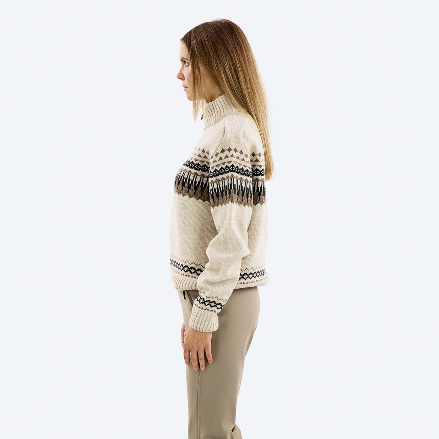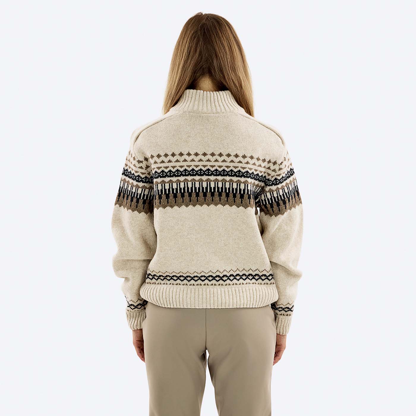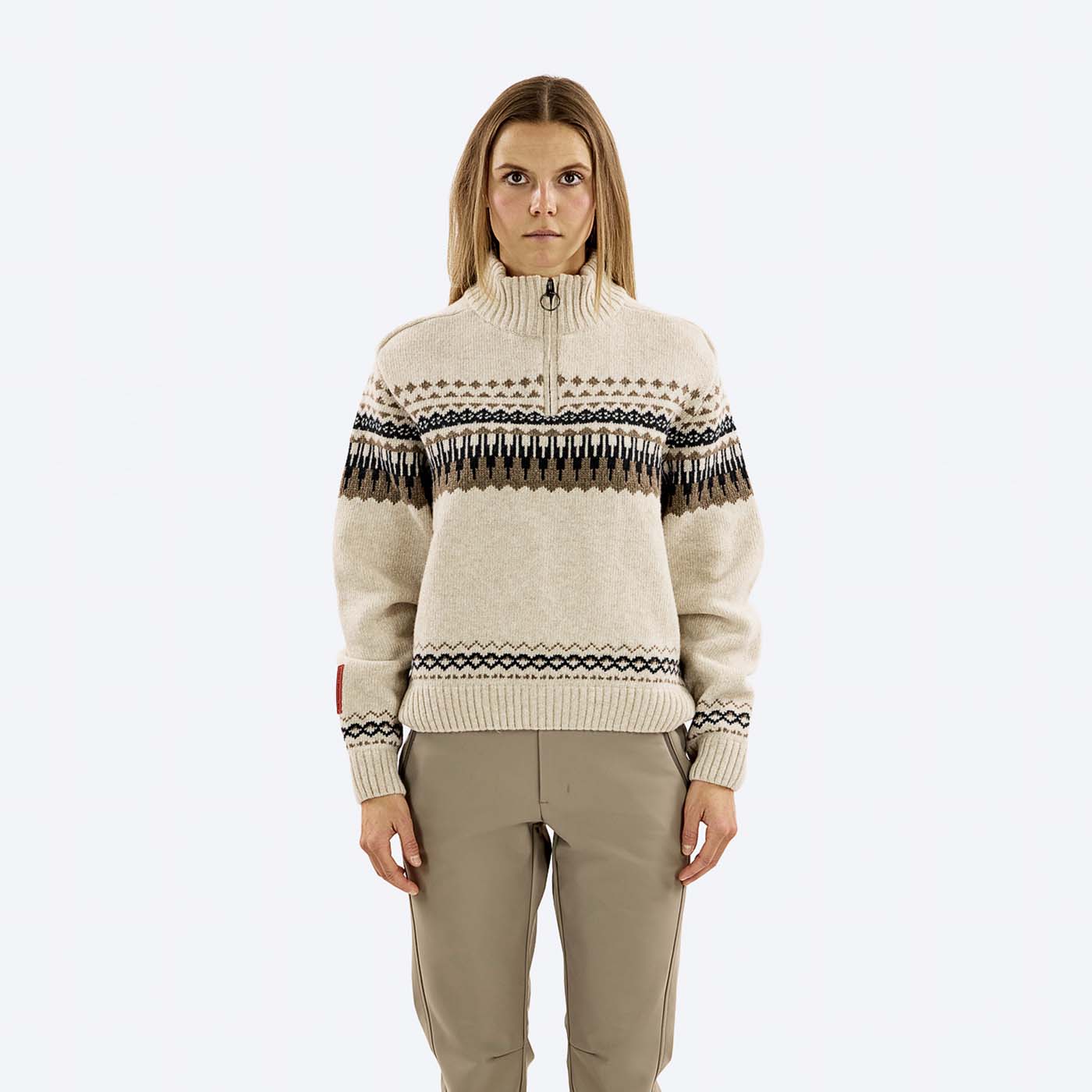 A zippered lambswool sweater with timeless, classic style, designed for comfort on and off the mountain. Featuring a quarter-length zipper and a tall collar, it offers extra warmth on chilly ski days. The slightly shorter, boxy cut adds a modern silhouette to a sweater rooted in tradition and inspired by classic mountain culture.
