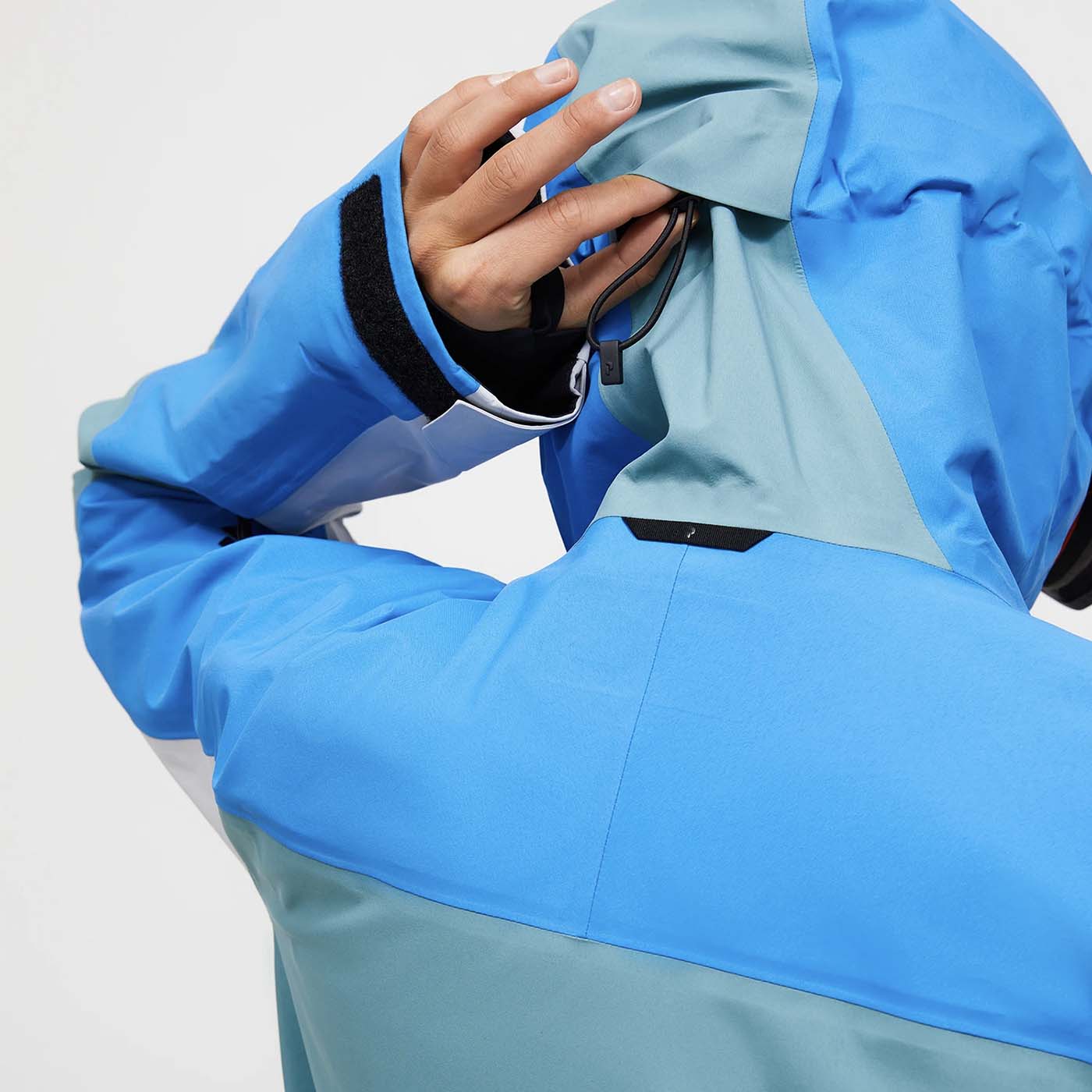 • Ski helmet compatible hood