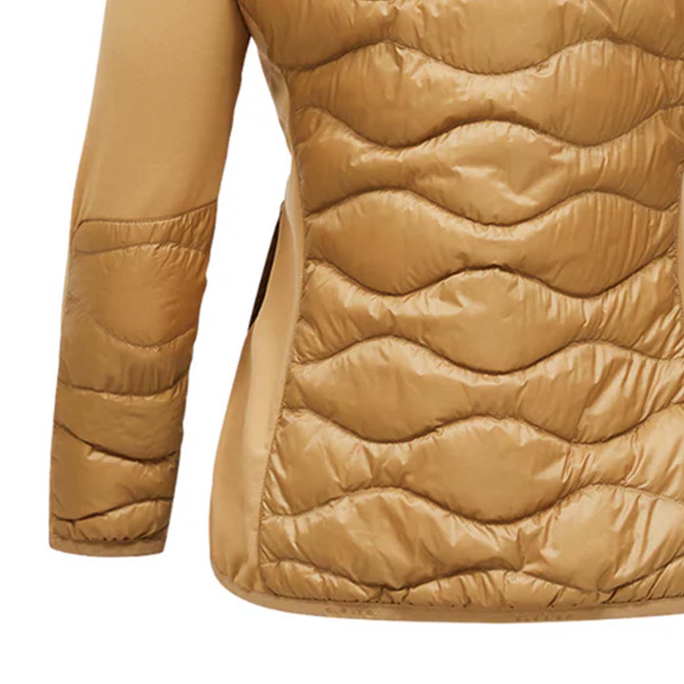The story goes that natural down insulation is less bulky than synthetic padding but loses its thermal properties when it's wet, whereas synthetic insulation works better when wet but tends to be more bulky and not as easy to compress into a small package. However, newer forms of synthetic padding are less bulky and more compressible, mimicking down, and may even be stretchy and breathable.