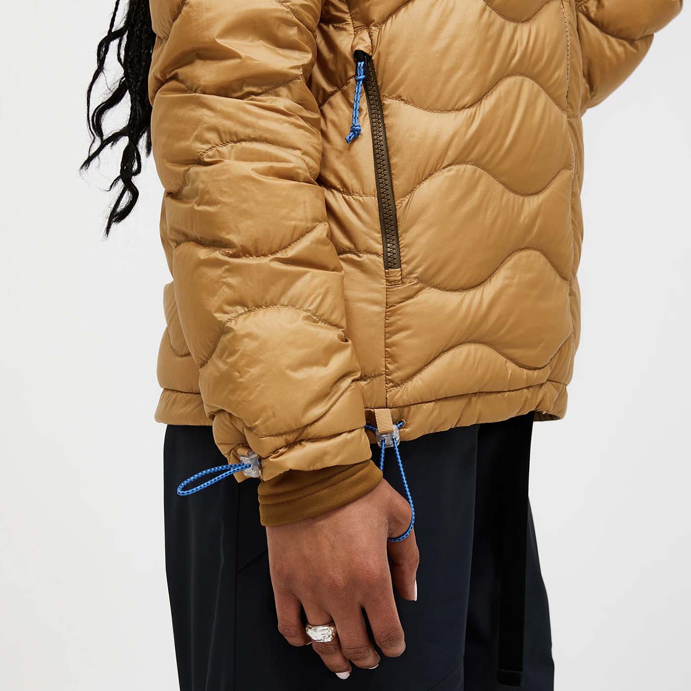 The story goes that natural down insulation is less bulky than synthetic padding but loses its thermal properties when it's wet, whereas synthetic insulation works better when wet but tends to be more bulky and not as easy to compress into a small package. However, newer forms of synthetic padding are less bulky and more compressible, mimicking down, and may even be stretchy and breathable.