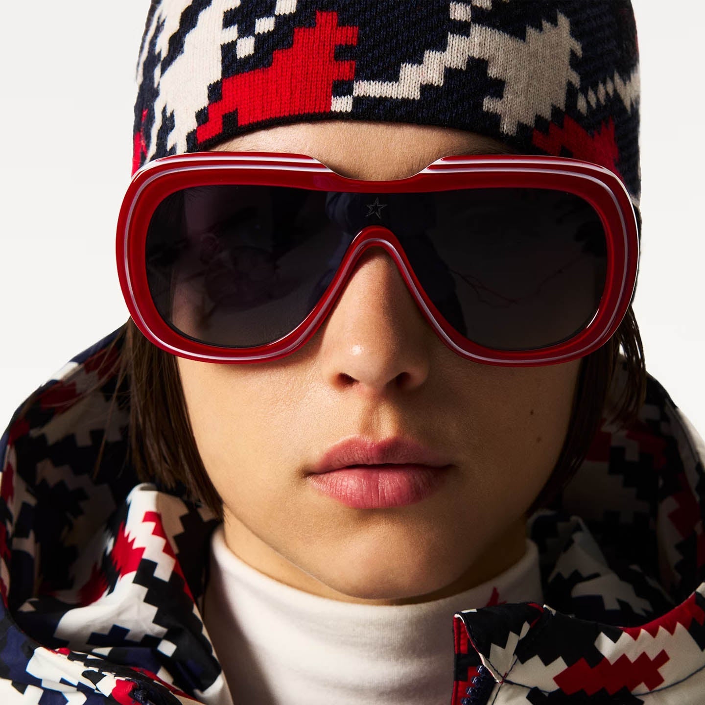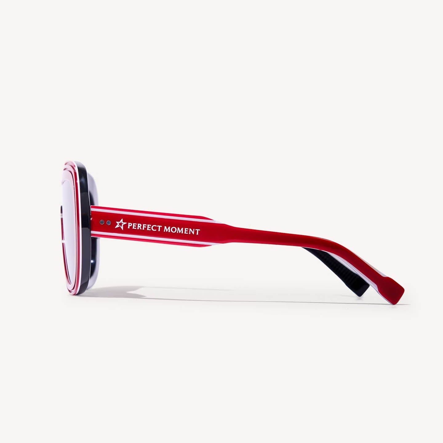 Bold and retro-inspired, the Statement Red Sunglasses deliver the perfect finishing touch to any slopeside or après-ski look. Their oversized silhouette and sporty stripe detailing pair seamlessly with Perfect Moment’s signature red ski jackets and pants, bringing a pop of colour and attitude to winter styling. Crafted from premium Eastman Acetate Renew, they offer enhanced grip around the nose and arms for comfortable, secure wear all day long. Finished with UV400 polarized, scratch-resistant lenses, they reduce glare for crisp visibility—from bright mountain peaks to sunny village terraces.
