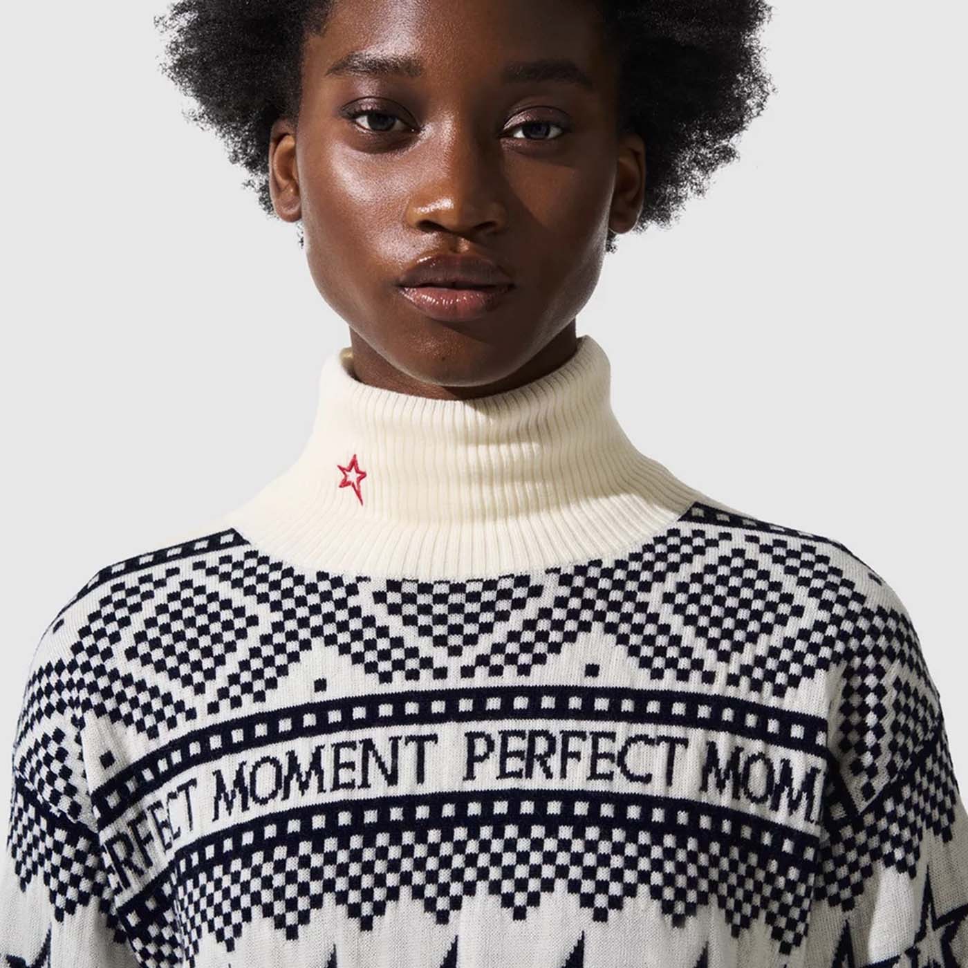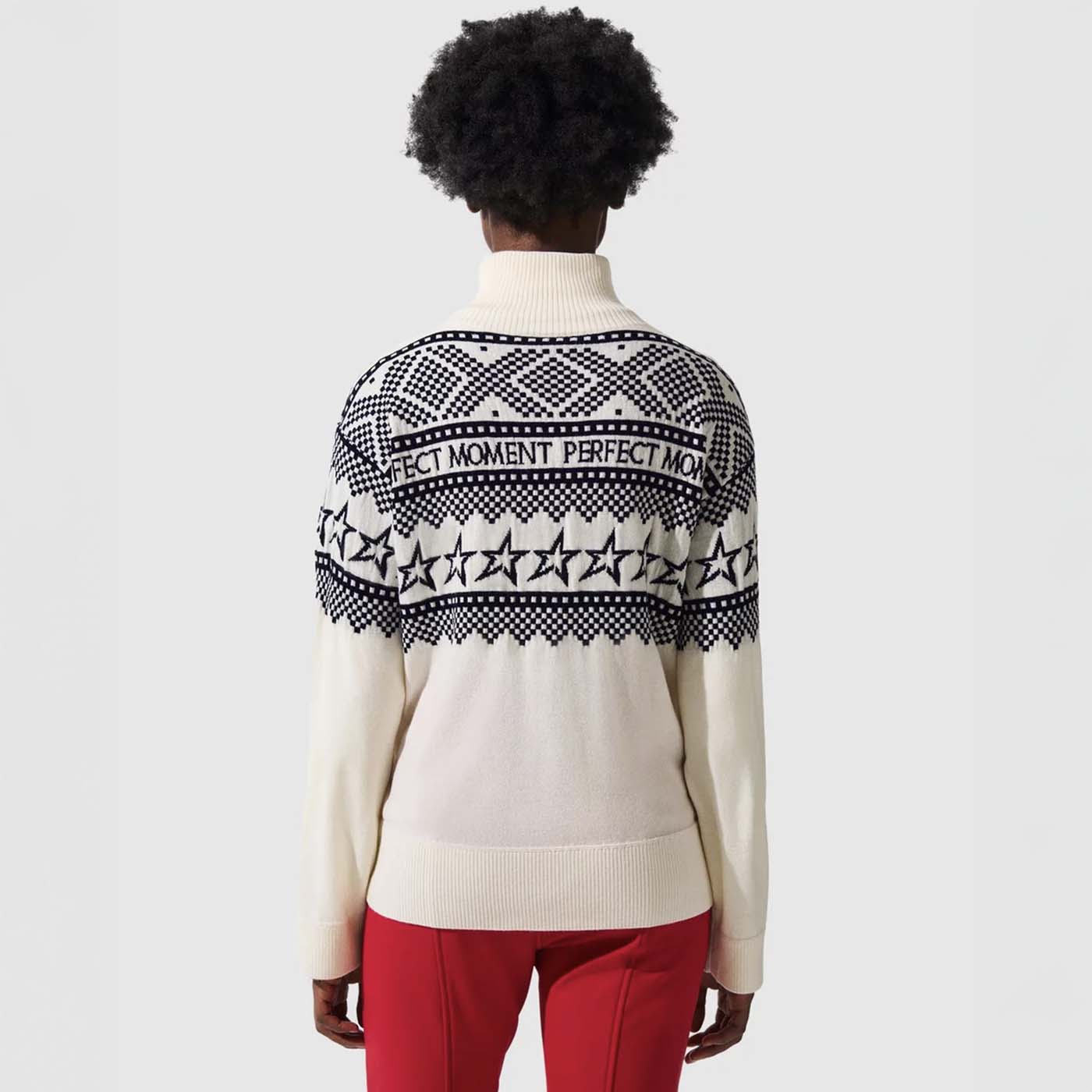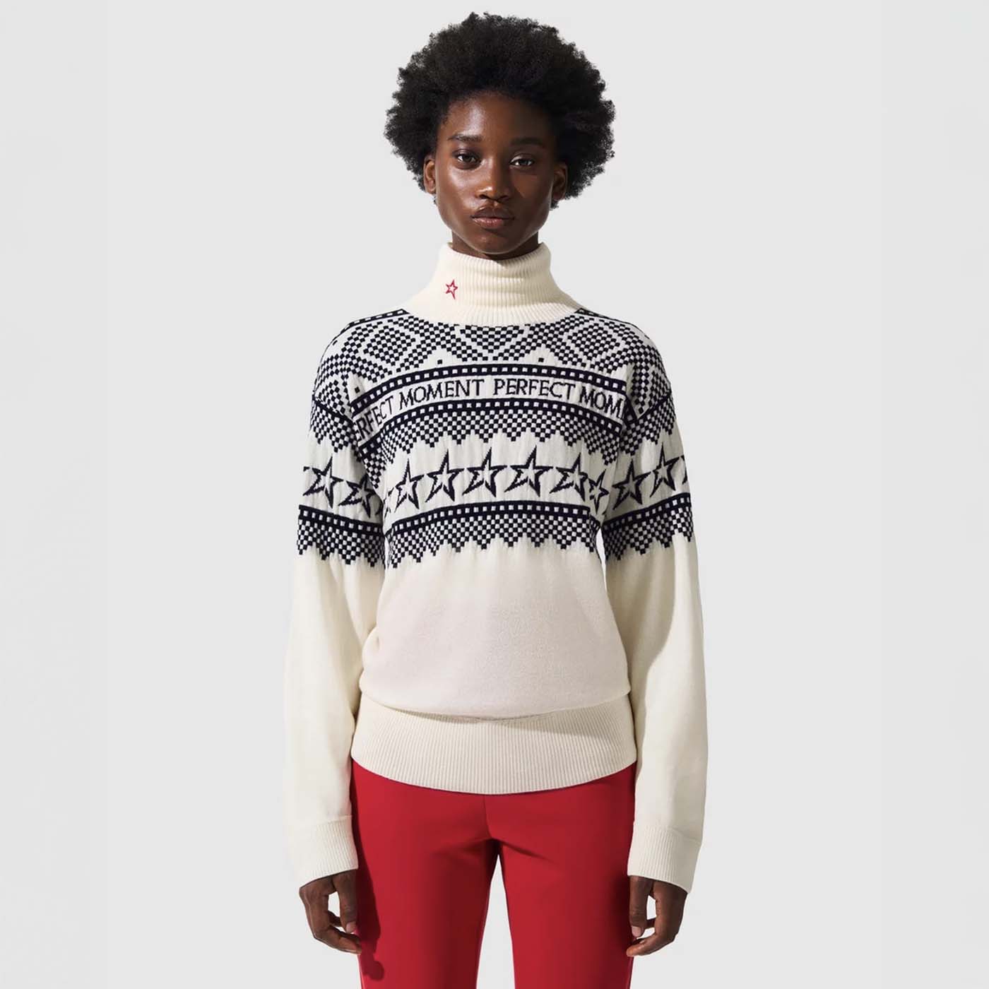 Featuring bold intarsia-knit stars and the Perfect Moment logo, this piece delivers a dynamic, eye-catching look perfect for layering, whether you’re on the slopes or relaxing fireside. Available in vibrant red and classic neutrals for understated elegance, this stylish knit keeps you cozy, chic, and effortlessly standout all winter.