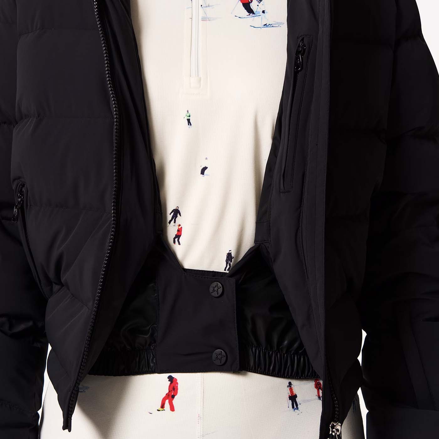The Polar Flare Ski Jacket remains a Perfect Moment icon, its cropped, flared silhouette and flattering, feminine fit. Made from high-performance fabric, it’s fully water resistant and insulated with 700-fill-power Allied down for exceptional warmth. Slope-ready details include a snap-down puller to secure the zip, a high-neck collar, a helmet-compatible hood, and an adjustable snow skirt. Complete with RECCO® technology and a full range of internal and external pockets.