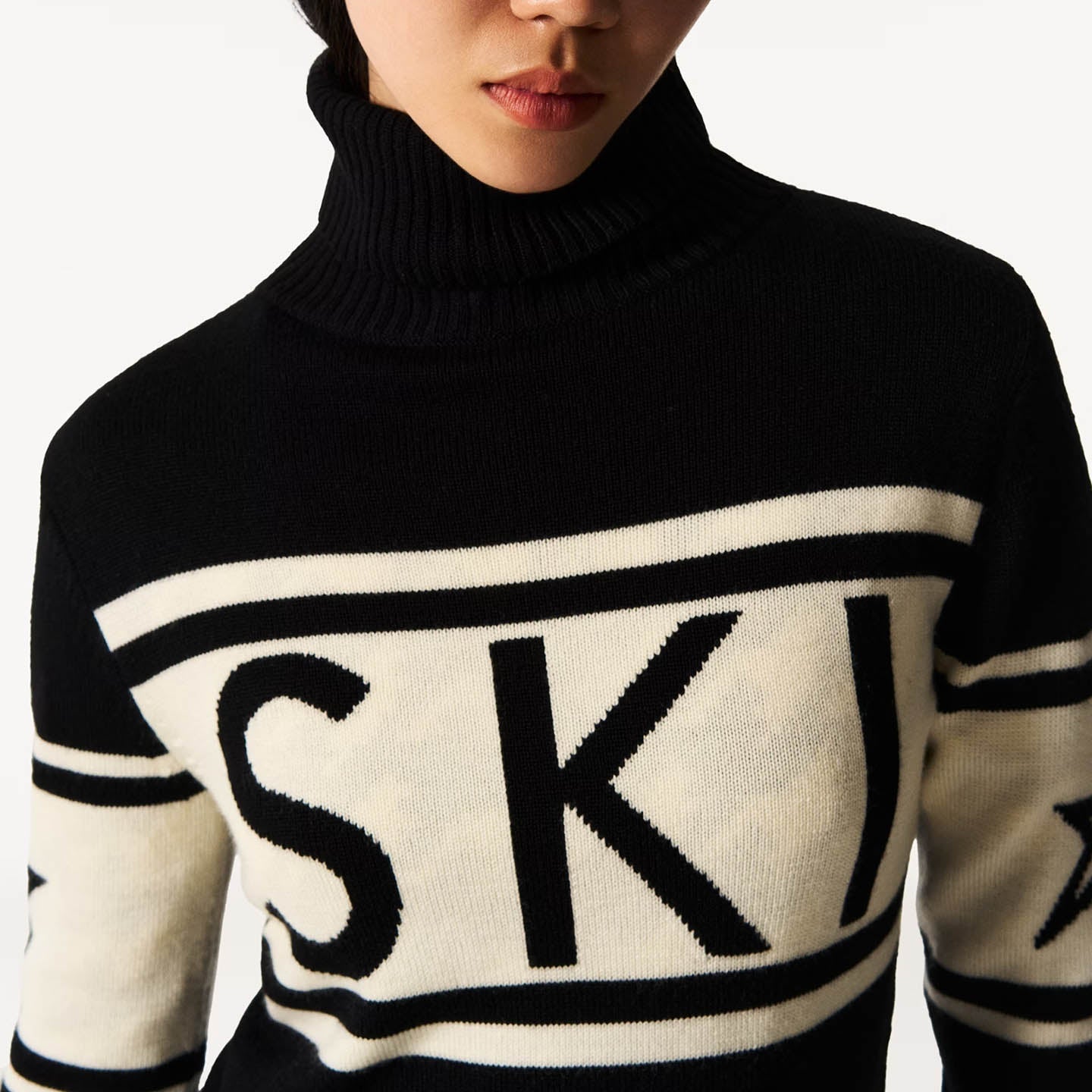A Perfect Moment icon, the Schild Sweater is the brand’s bestselling knit—renowned for its bold aesthetic and reliable alpine warmth. Crafted from soft, temperature-regulating Merino wool, it offers breathable comfort on the mountain and effortless style off it. The fitted silhouette highlights the signature “SKI” intarsia across the chest, making it an unmistakable winter staple. Versatile and easy to layer, it slips smoothly under outerwear or stands alone for après. Pair with Aurora Ski Pants for a considered, cold-weather look.