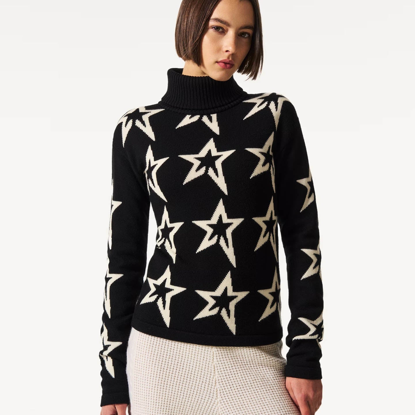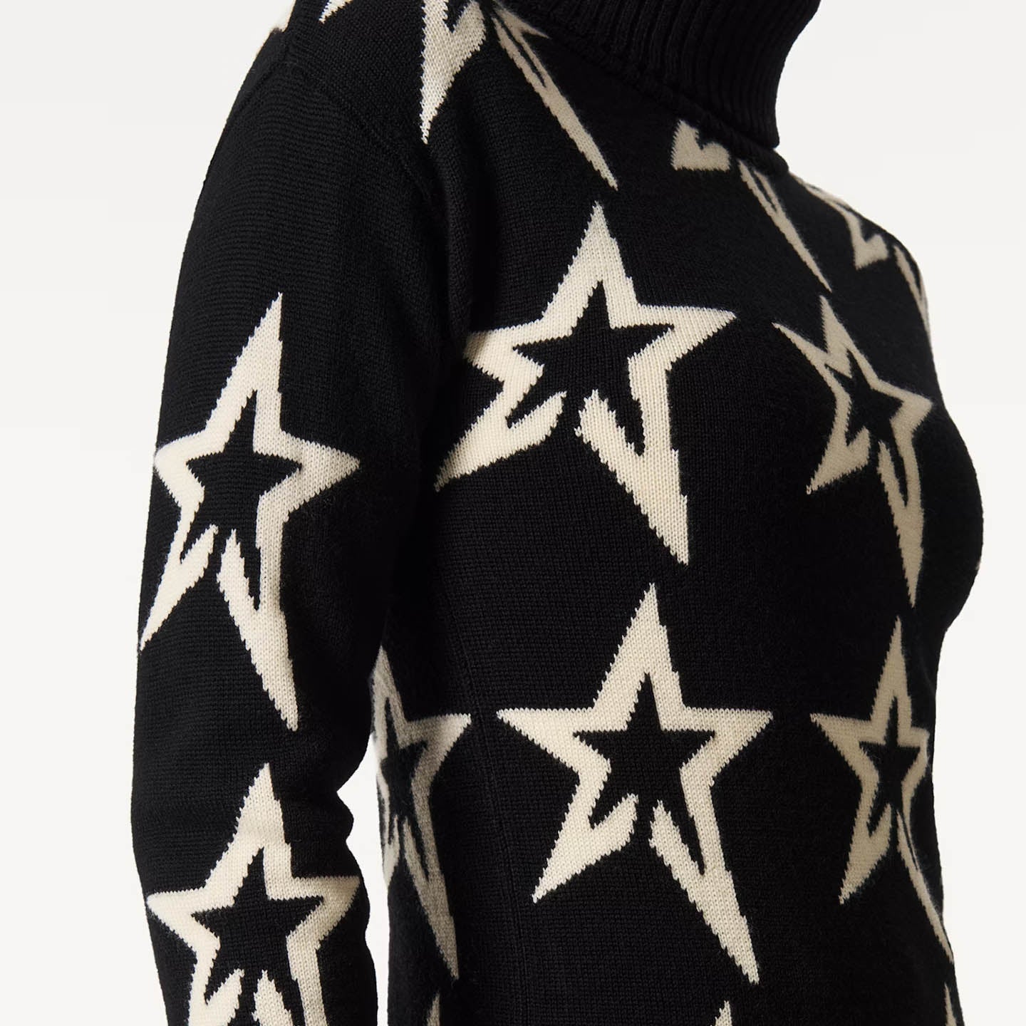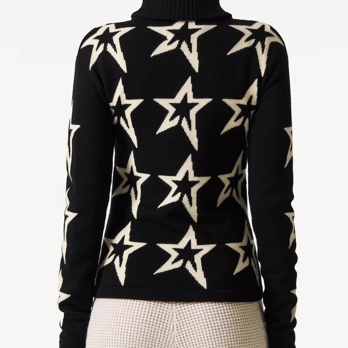 A standout piece on and off the slopes, the Star Dust Sweater showcases Perfect Moment’s iconic star intarsia across a sleek, fitted silhouette. Crafted from Woolmark-certified Merino wool, it offers natural breathability and temperature regulation—keeping you warm in cold conditions and comfortably cool during activity. The snug turtleneck and streamlined fit make it an ideal layering piece under salopettes while still delivering a bold graphic statement for après.