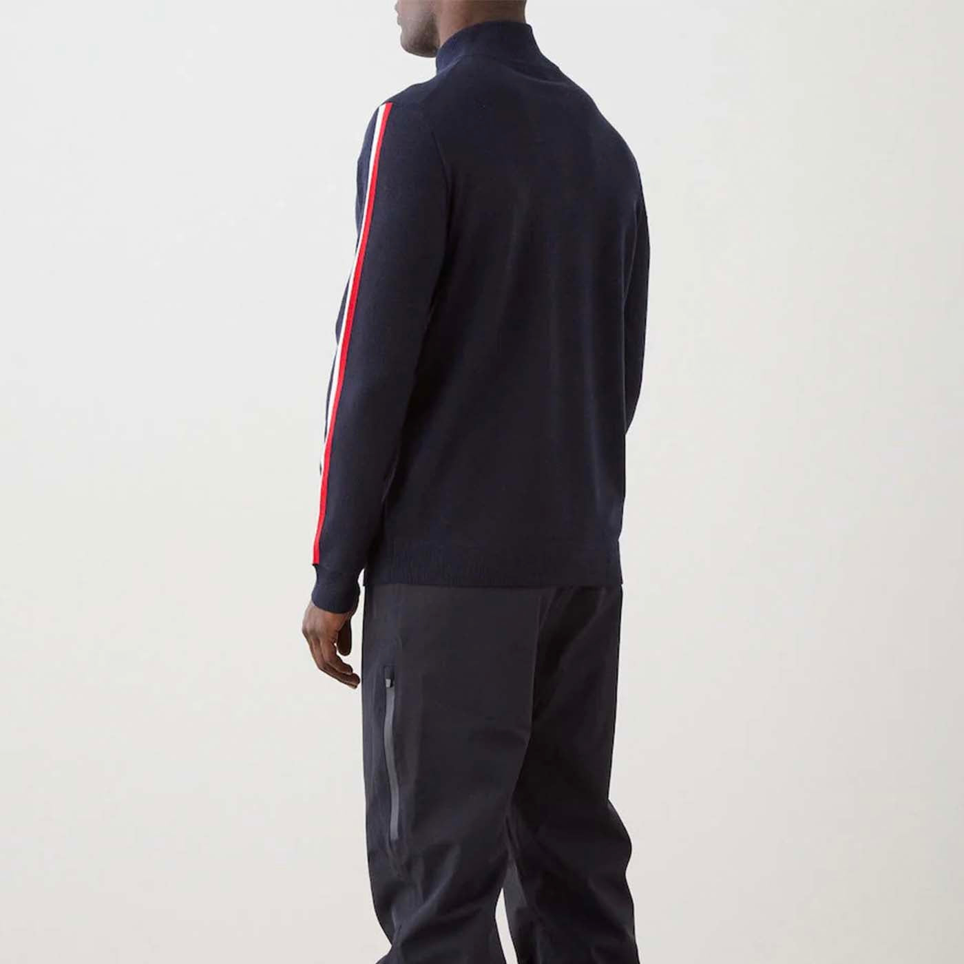 The FreeBird Zip-Up is a lightweight ski sweater built for versatility both on and off the slopes. Knitted in a soft, breathable merino wool blend, it provides natural warmth and moisture-wicking performance for active days in the mountains. Designed with a regular fit, stand collar, and 1/4 front zipper for easy ventilation, it delivers the perfect mix of function and style. Contrasting sleeve stripes add a sporty, retro-inspired touch, while the tonal silicone logo on the chest keeps the look clean and modern.