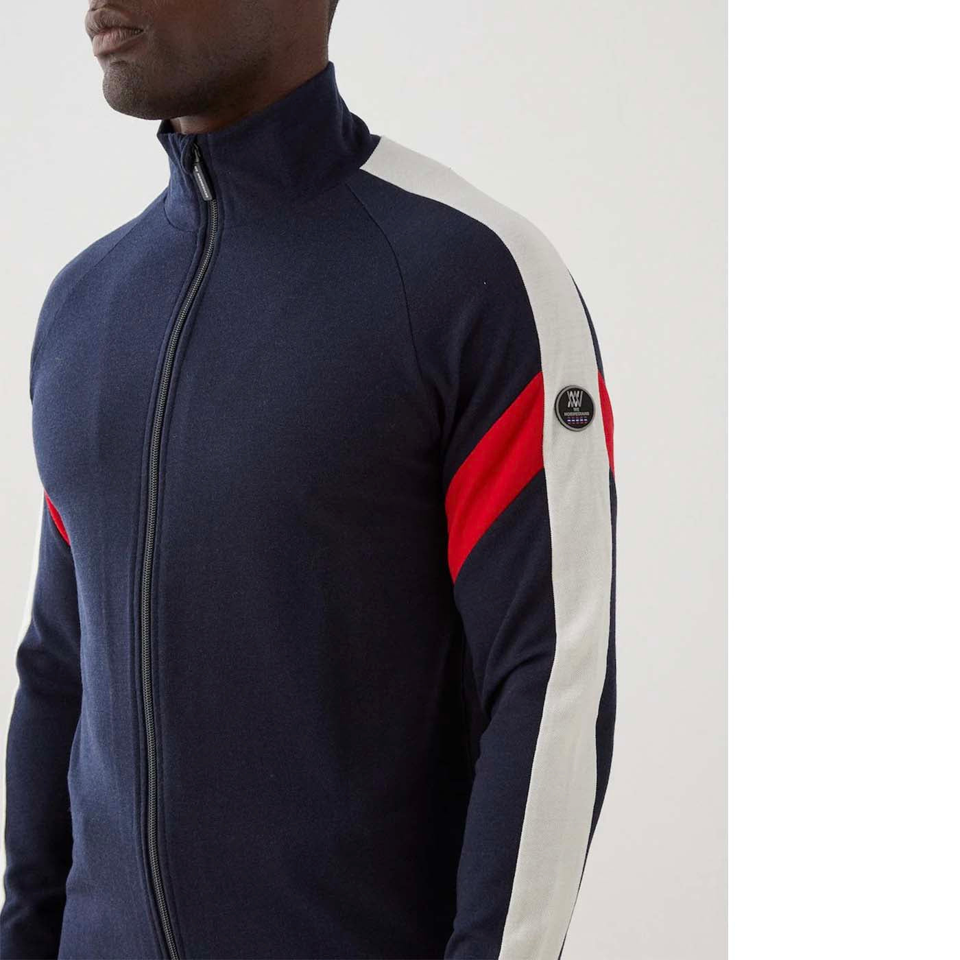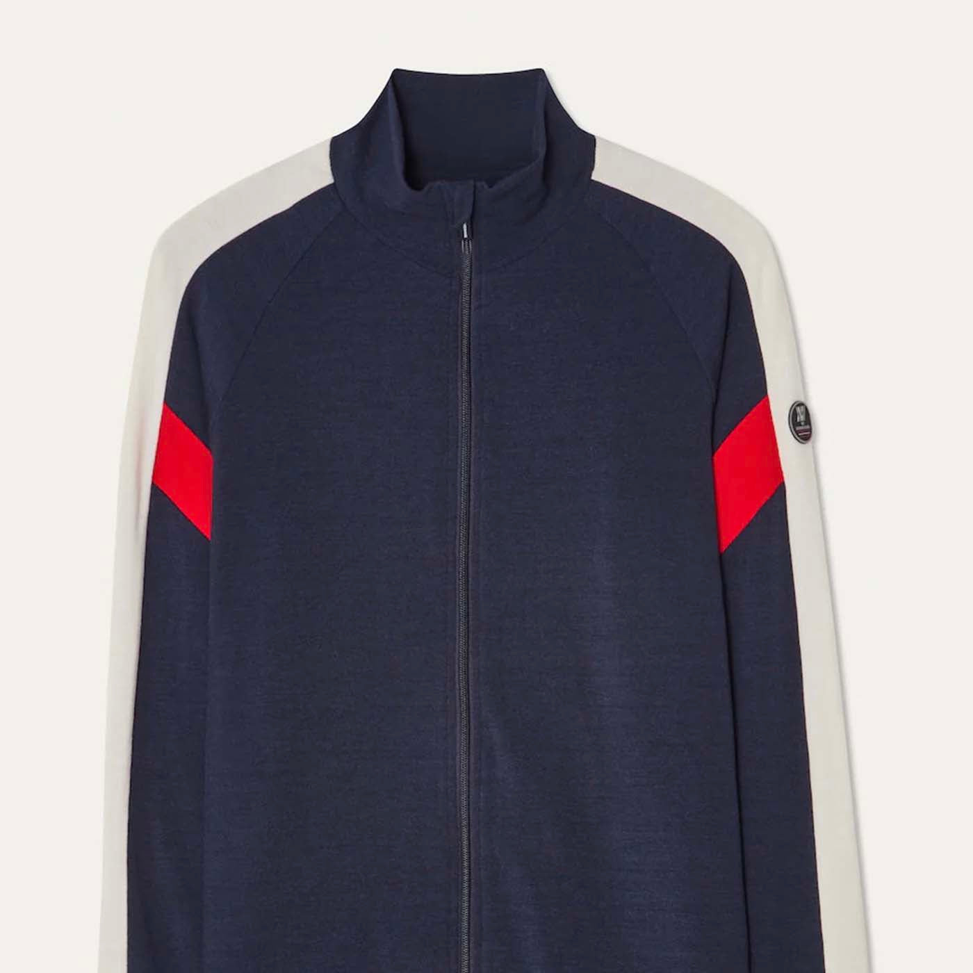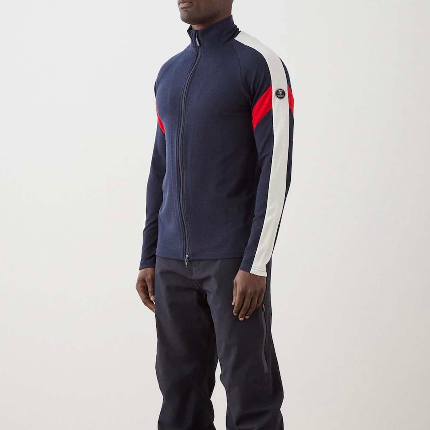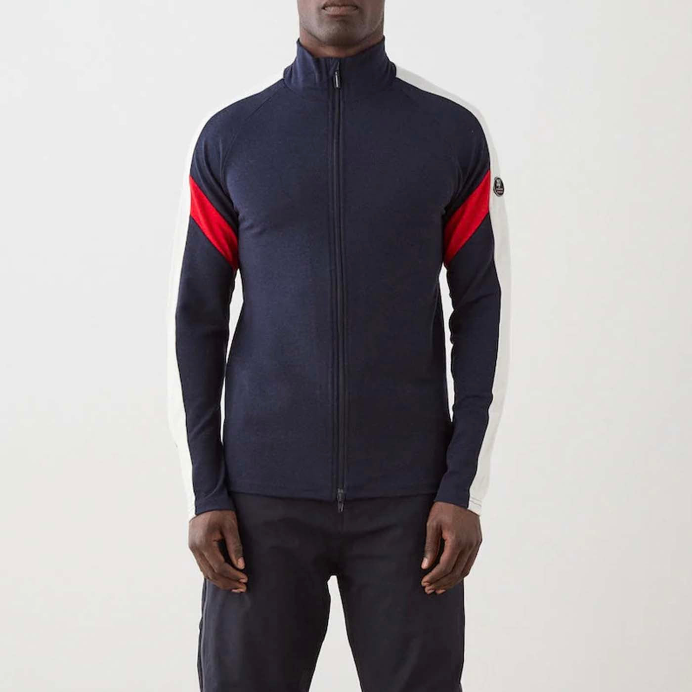 Introducing the Zermatt Full Zip a versatile mid-layer knit crafted in our iconic piqué fabric, perfect for layering over the Snø base-layer. This light jacket features a full front zipper, a classic stand collar, and bold colour-blocked sleeves that bring a dynamic, modern edge to your ski wardrobe.