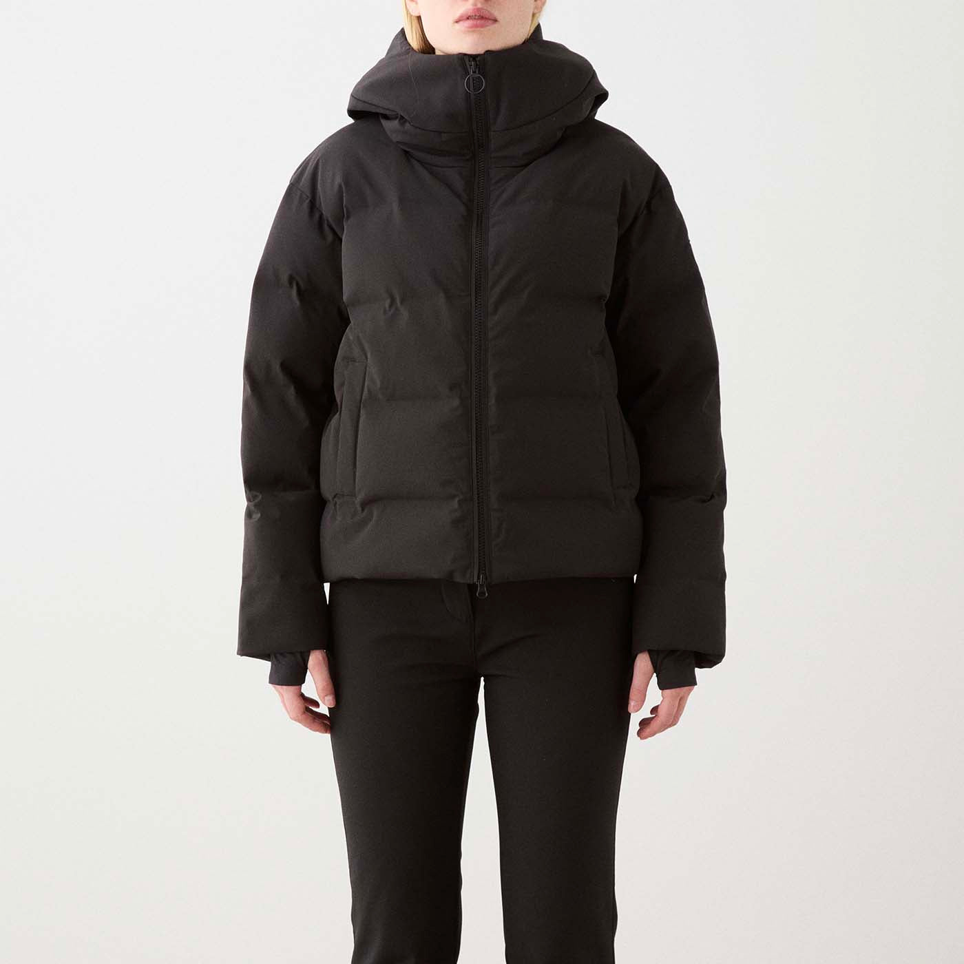 Engineered with welded “seams” between the air pockets, this ski jacket offers a clean, modern aesthetic while enhancing durability and functional comfort. A spacious, snug hood fits securely over a ski helmet, and the detachable snow skirt plus multiple zipped pockets provide practical versatility for all-day wear.