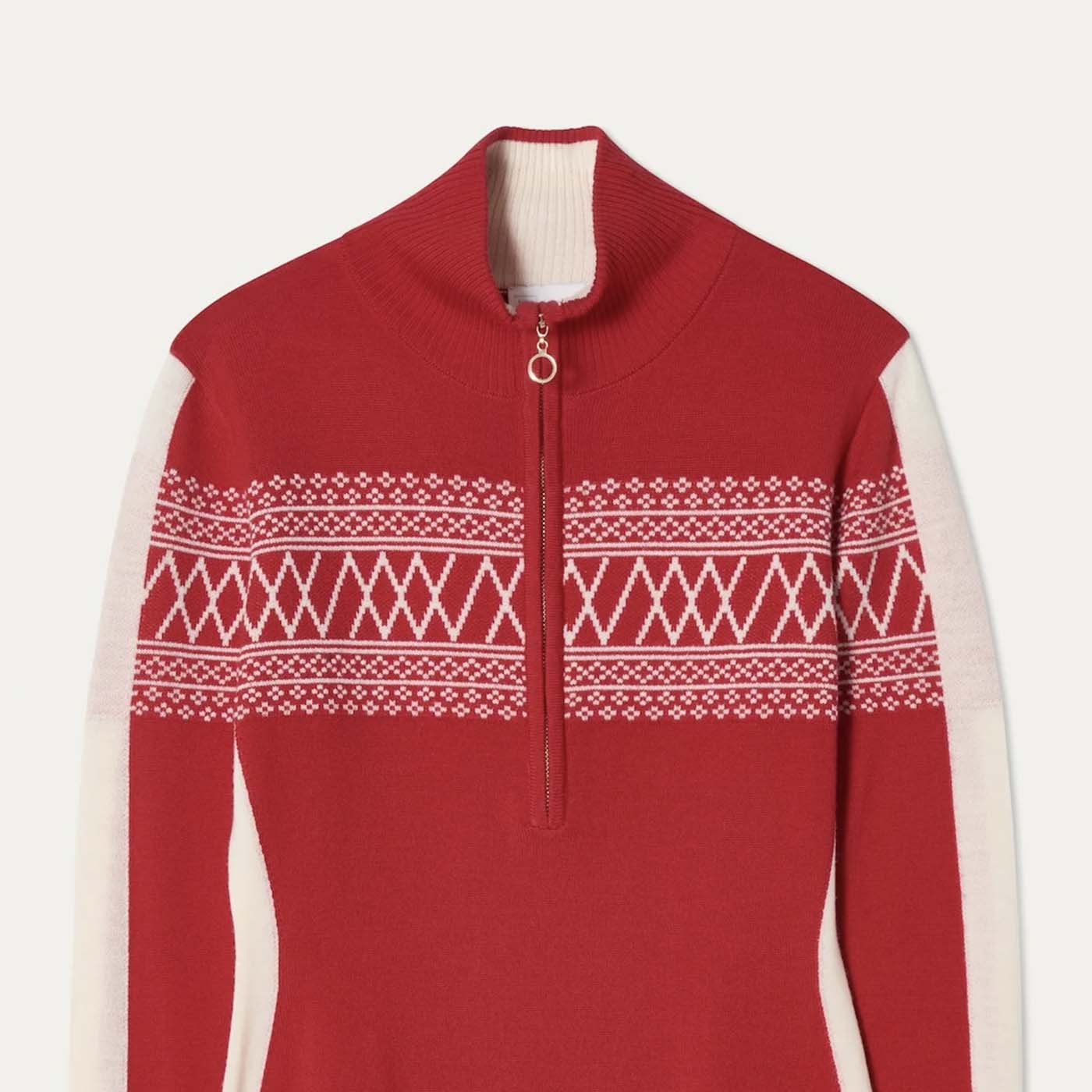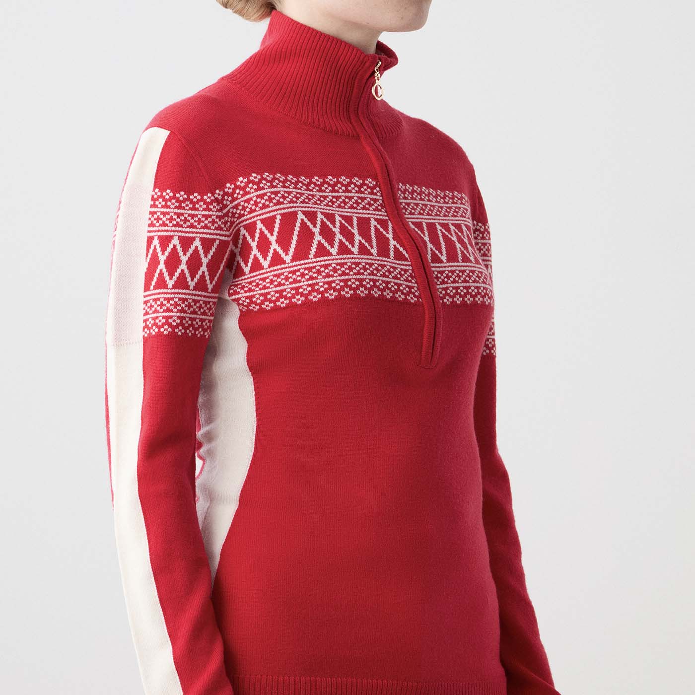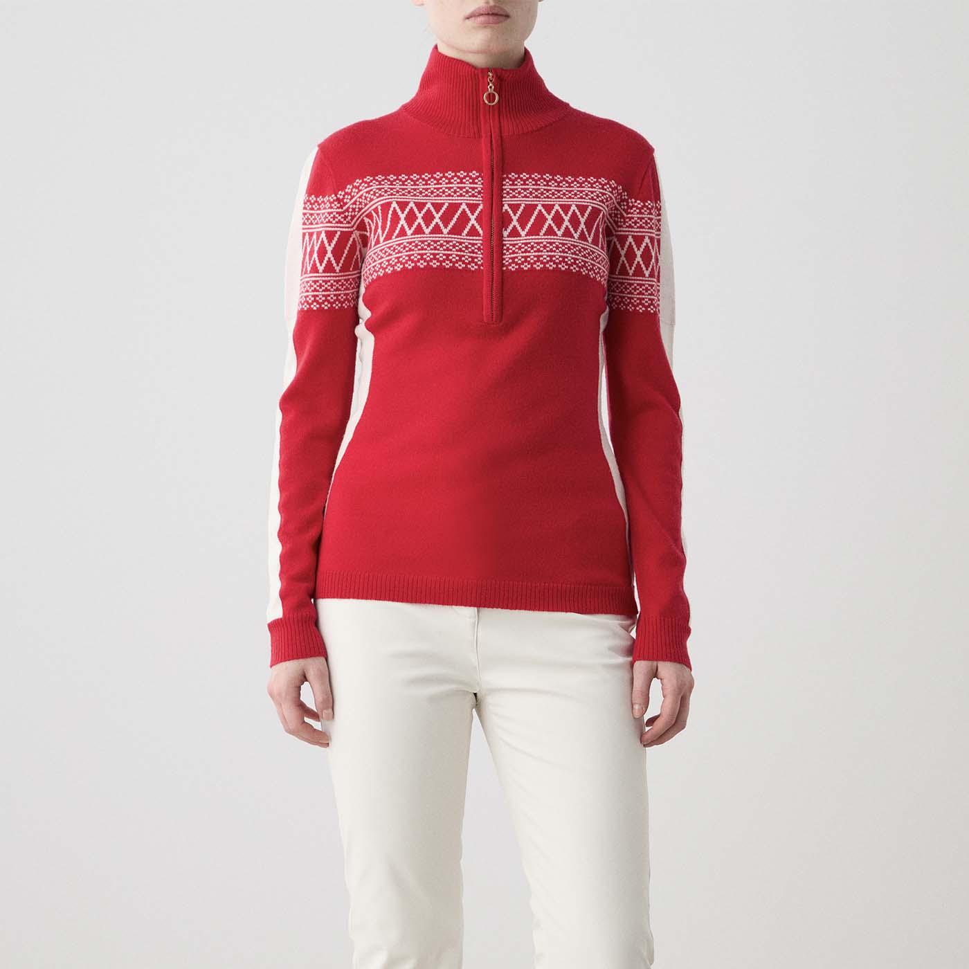 This Signature 1/4-Zip draws inspiration from the traditional Setesdal pattern, reimagined with sporty details including contrasting white intarsia on the sleeves and side panels. Designed with a fitted silhouette, this versatile performance layer delivers both style and function for active days outdoors.