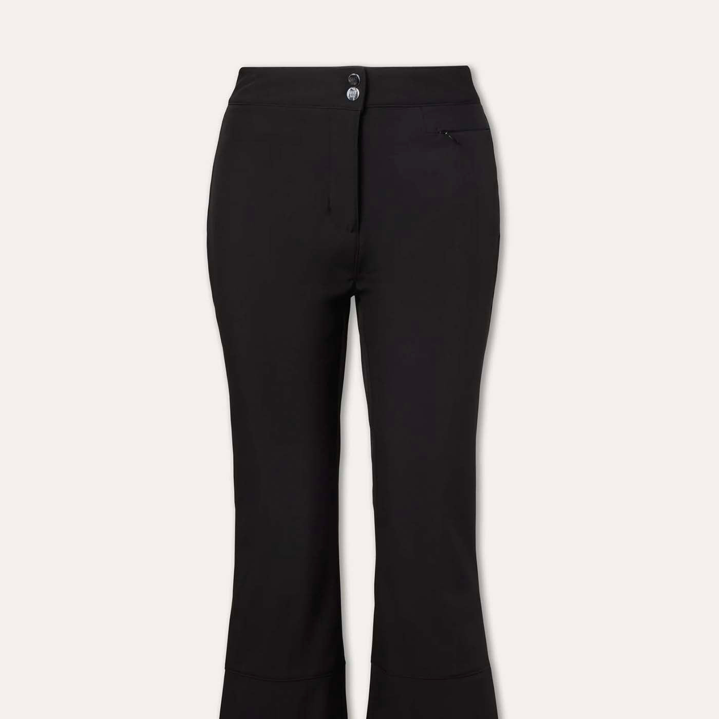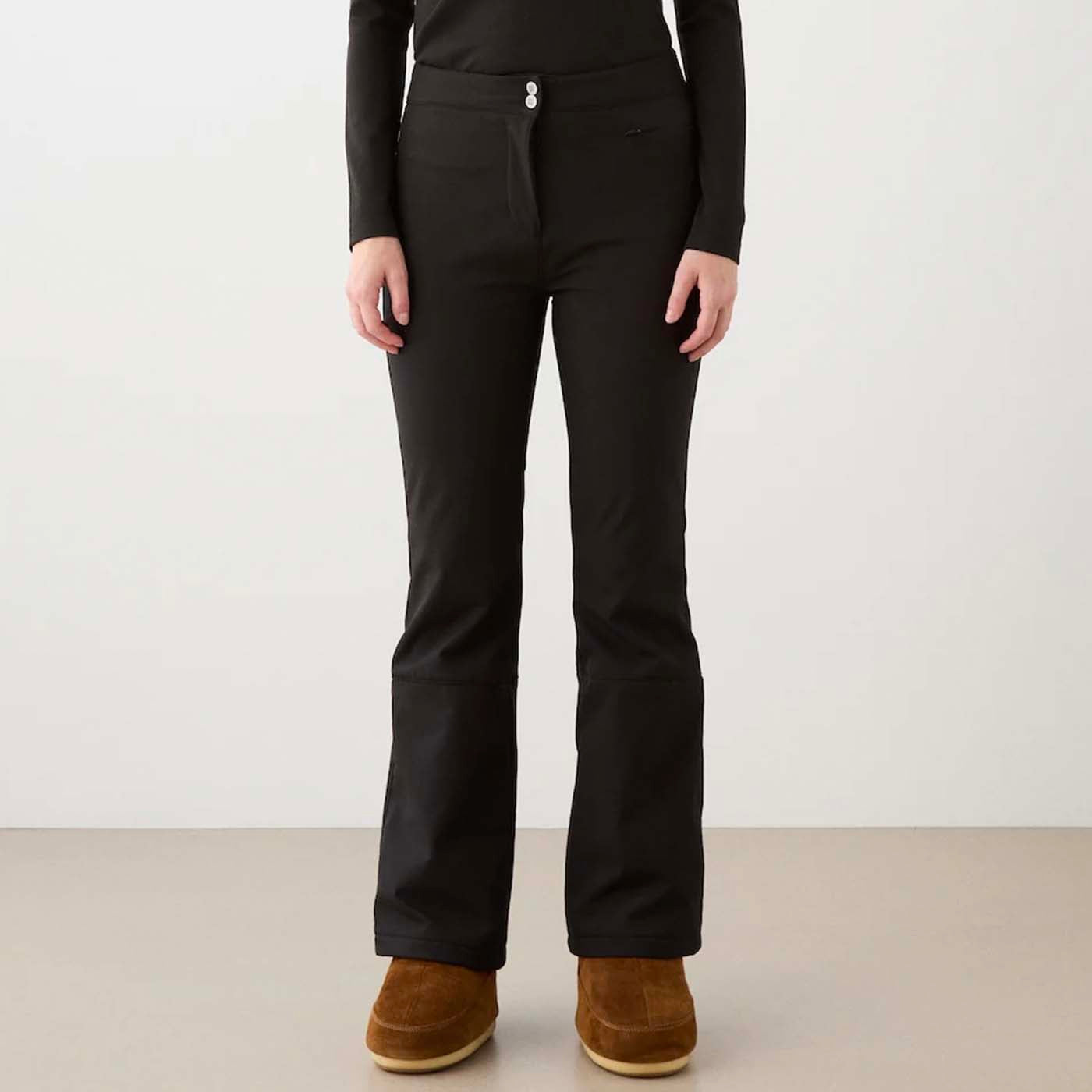 Crafted from a water-repellent soft shell fabric with just the right amount of spandex, the Tyin Bootleg Ski Pant delivers a flattering, contoured fit that moves with you on every turn. The soft shell construction provides comfortable stretch, reliable weather resistance, and a sleek silhouette ideal for long days on the mountain.