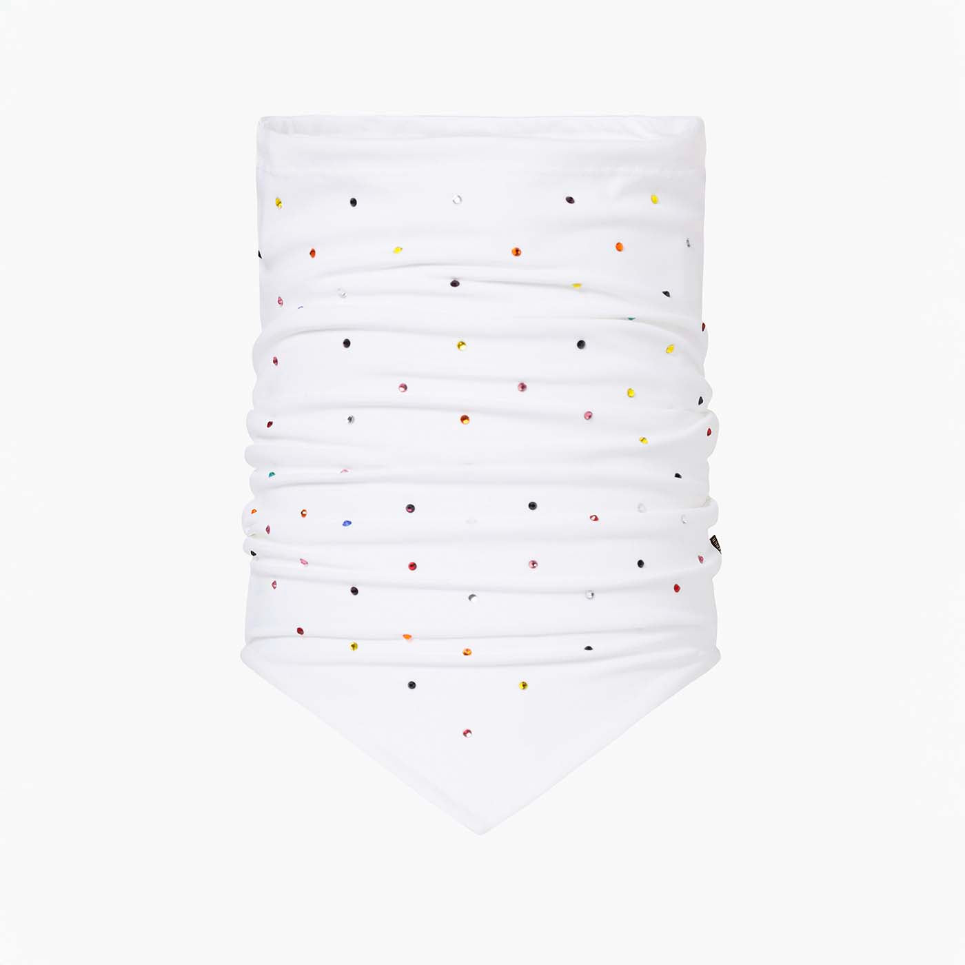 The Multicolour Sparkling neckwarmer is crafted from powerstretch interlock fabric, embellished with a multicoloured strass pattern for a touch of shimmer. Soft jersey lining adds warmth and comfort, while a woven brand label at the side seam completes the design.