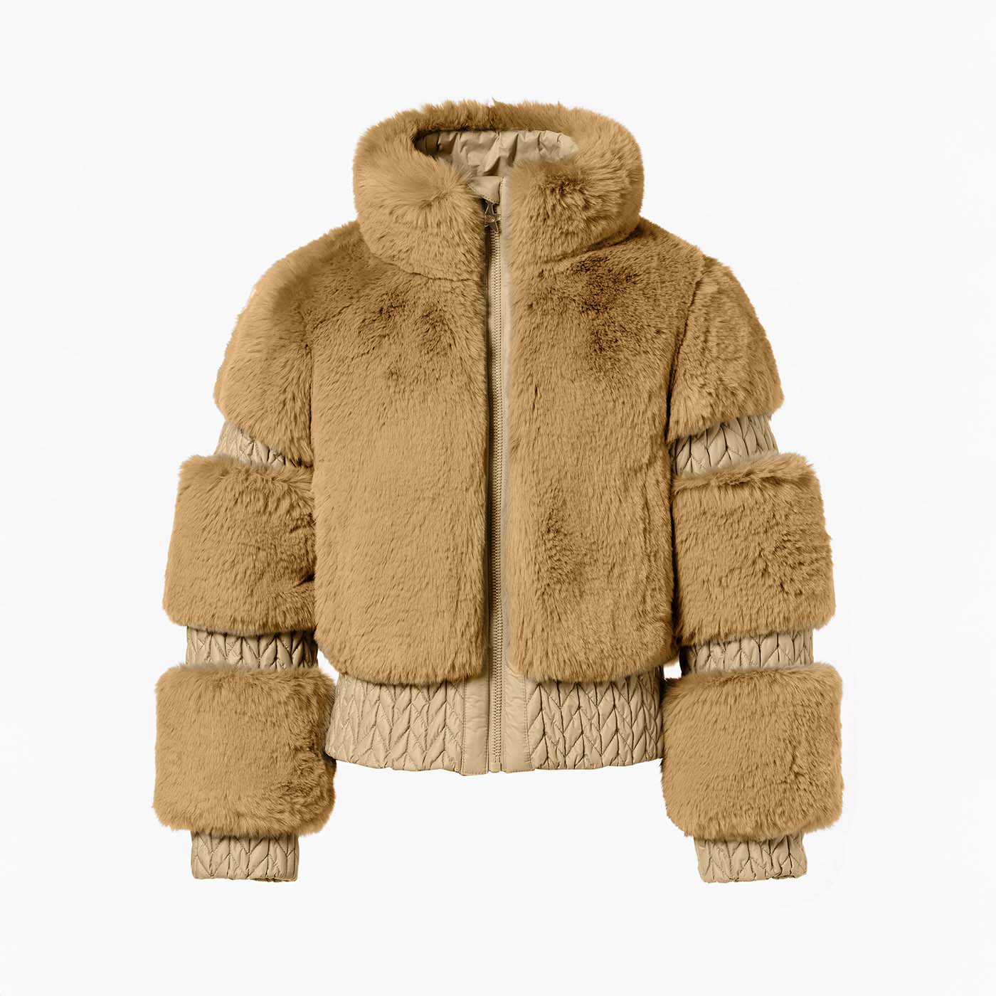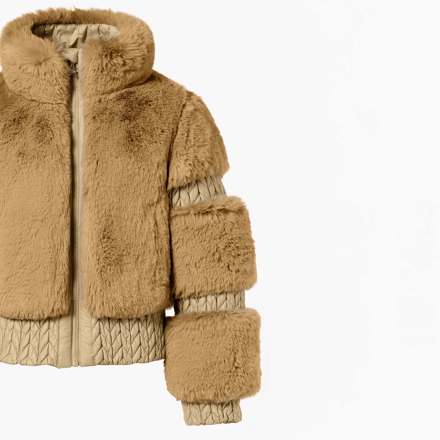 This faux fur jacket with smock details combines warmth, comfort, and style. Featuring Primaloft padding and a windproof layer between the outer shell and lining, it provides reliable protection against the cold. The partly recycled lining includes an anti-odor finish for lasting freshness. Designed with two outer pockets, one inner pocket, and knitted inner cuffs, this jacket is finished with elegant smock detailing for a refined touch.