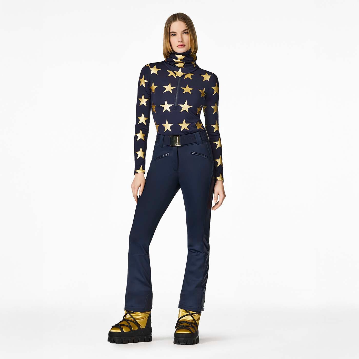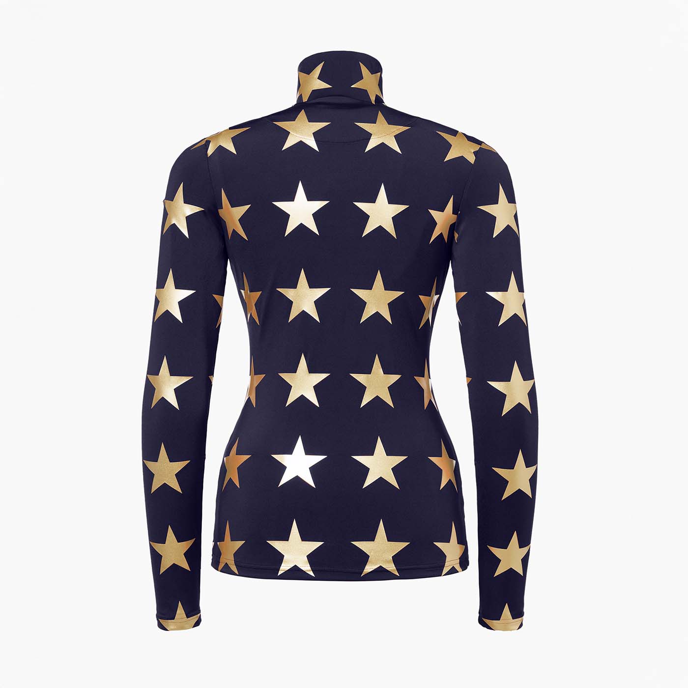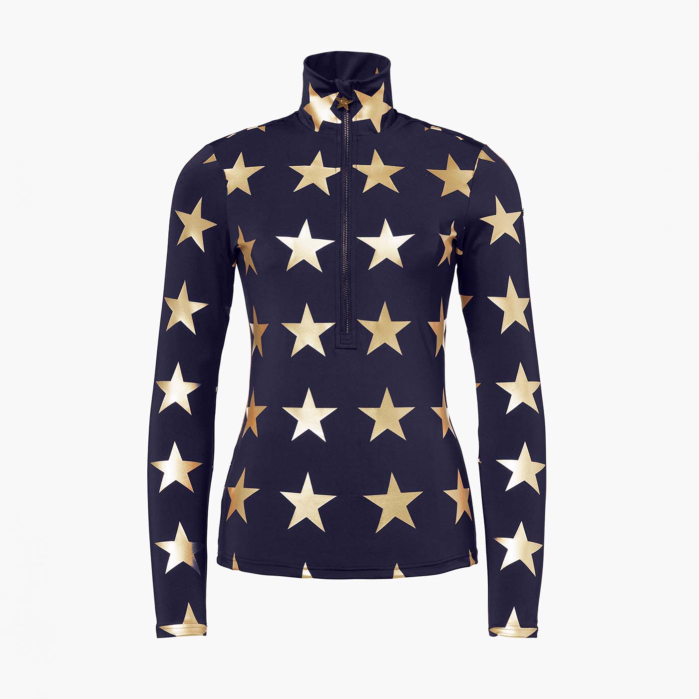 The Stars Ski Pully is crafted from powerstretch interlock fabric with a soft brushed back for warmth and comfort. Designed with a close-fitting collar and a longer front ½ zip, it offers a flattering, functional fit. Finished with an all-over star print and a metal brand label on the upper sleeve.
