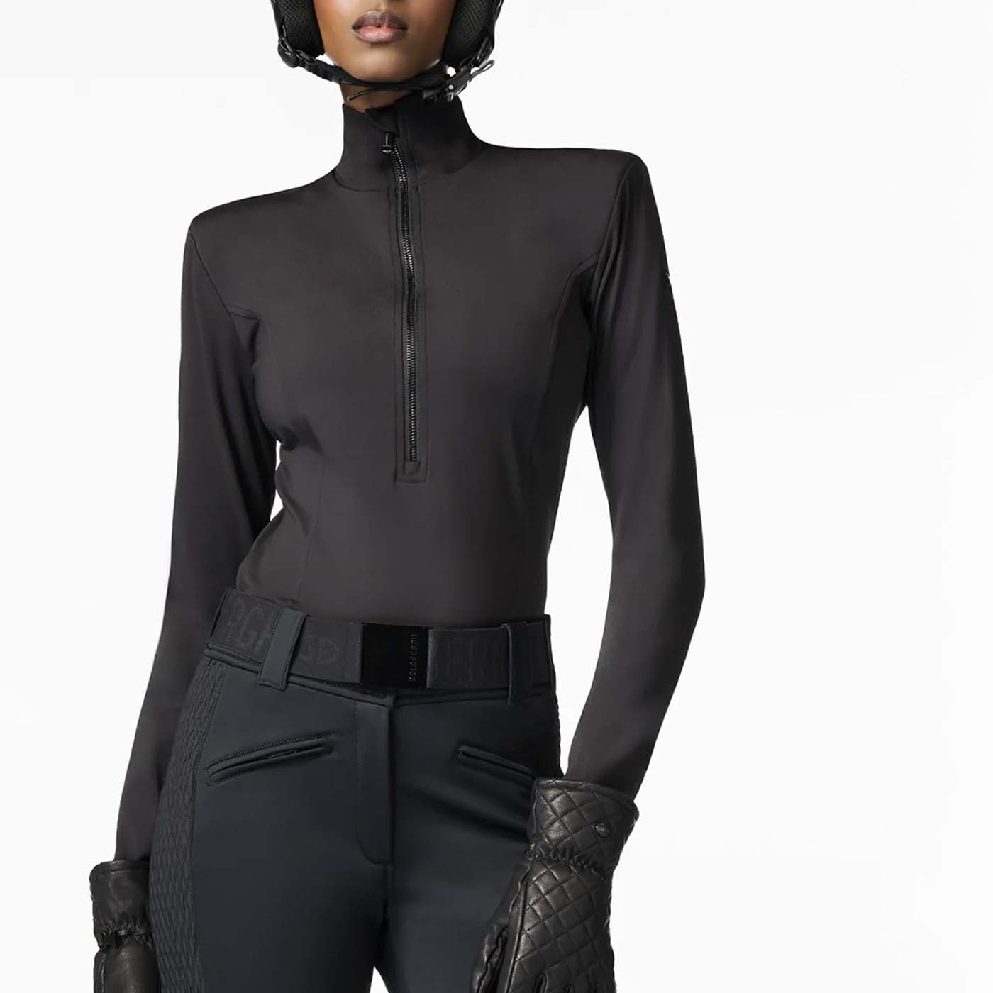 The Basic Ski Pully is crafted from stretch jersey with a soft brushed back, providing warmth and comfort on the slopes. It features a close-fitting collar and a longer front ½ zip for easy layering. A metal brand label on the upper left sleeve adds a signature touch. Available in other colours to complete your outfit.