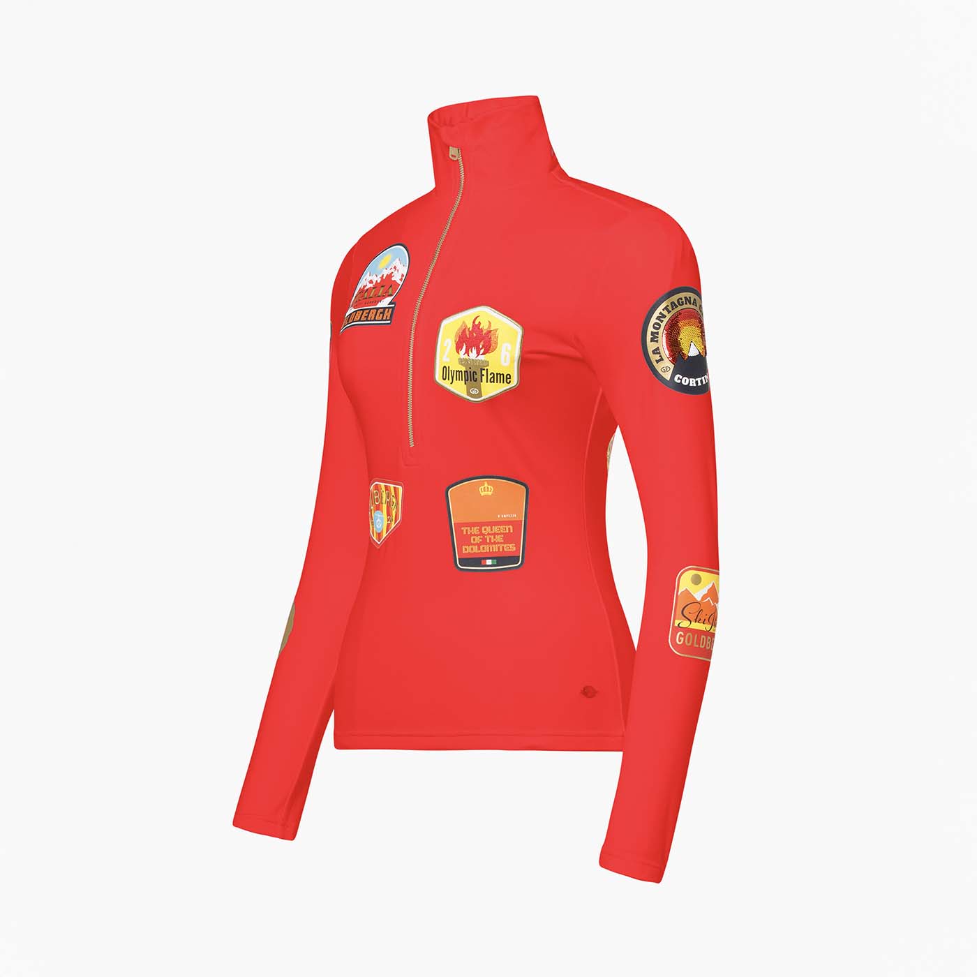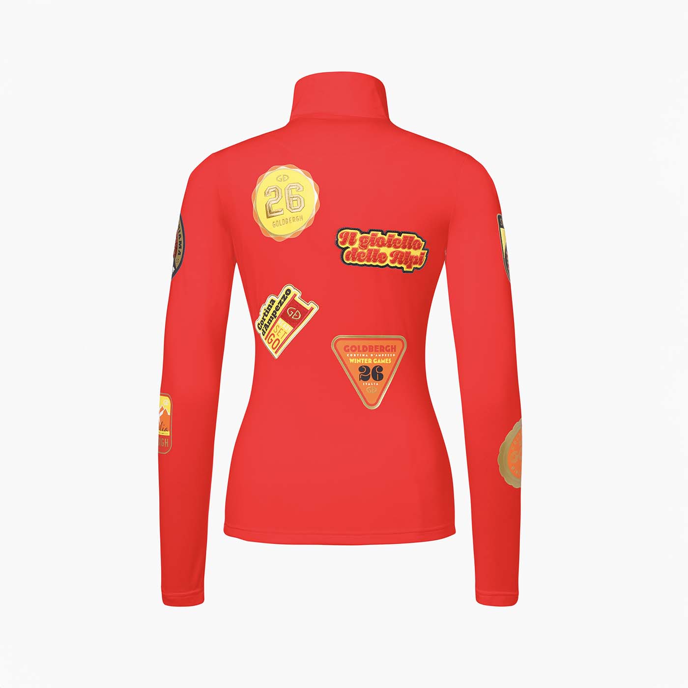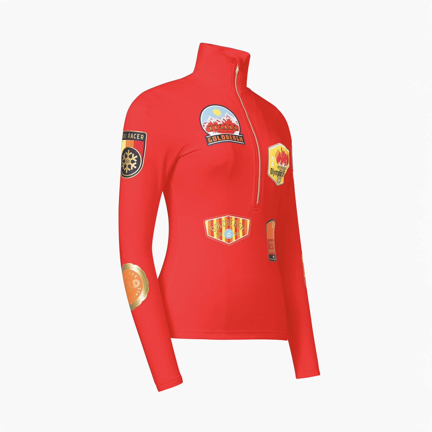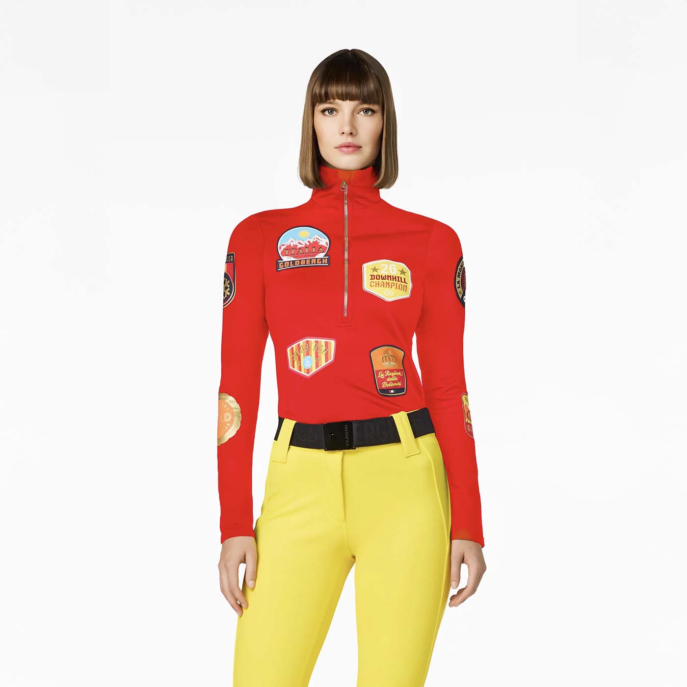 The Graphic Ski Pully is crafted from stretch jersey with a soft brushed back for warmth and comfort. Designed with a close-fitting collar and a longer front ½ zip, it offers a sleek, functional fit. The all-over graphic print and embroidered badges add a bold, distinctive finish.