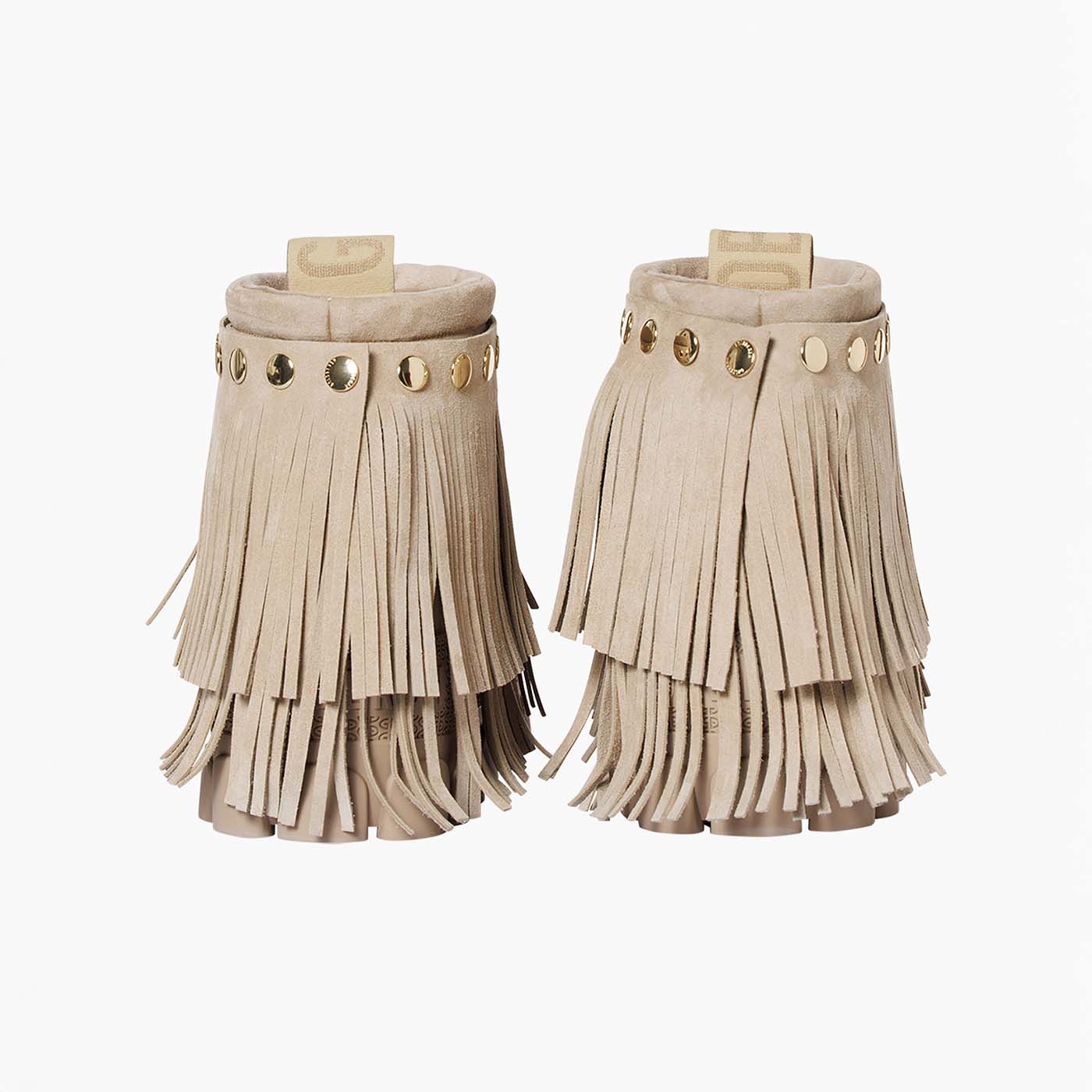 - Upper: Faux suede, 30 % cow leather, 60 % polyester, 10 % polyamide with 100 % real suede fringe
