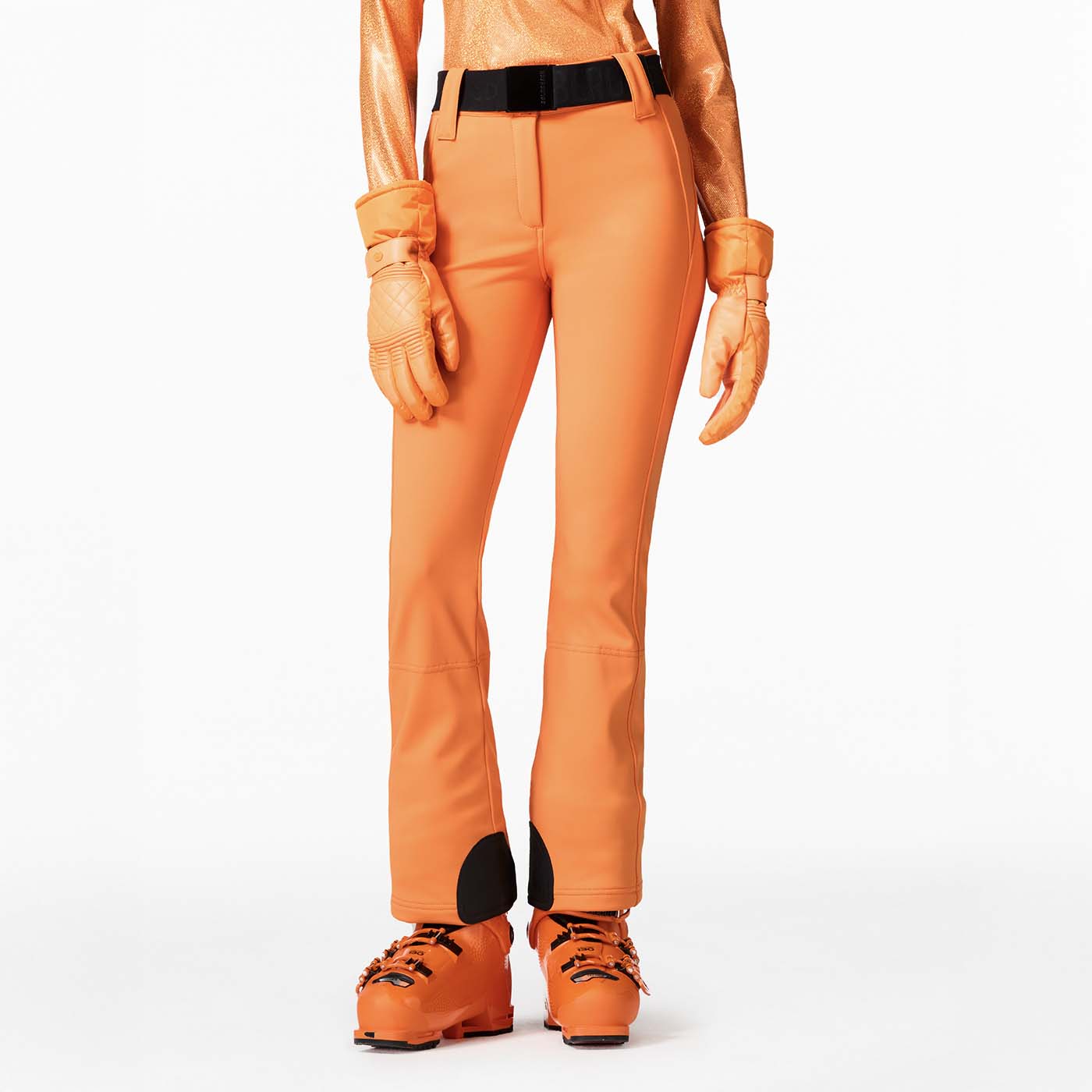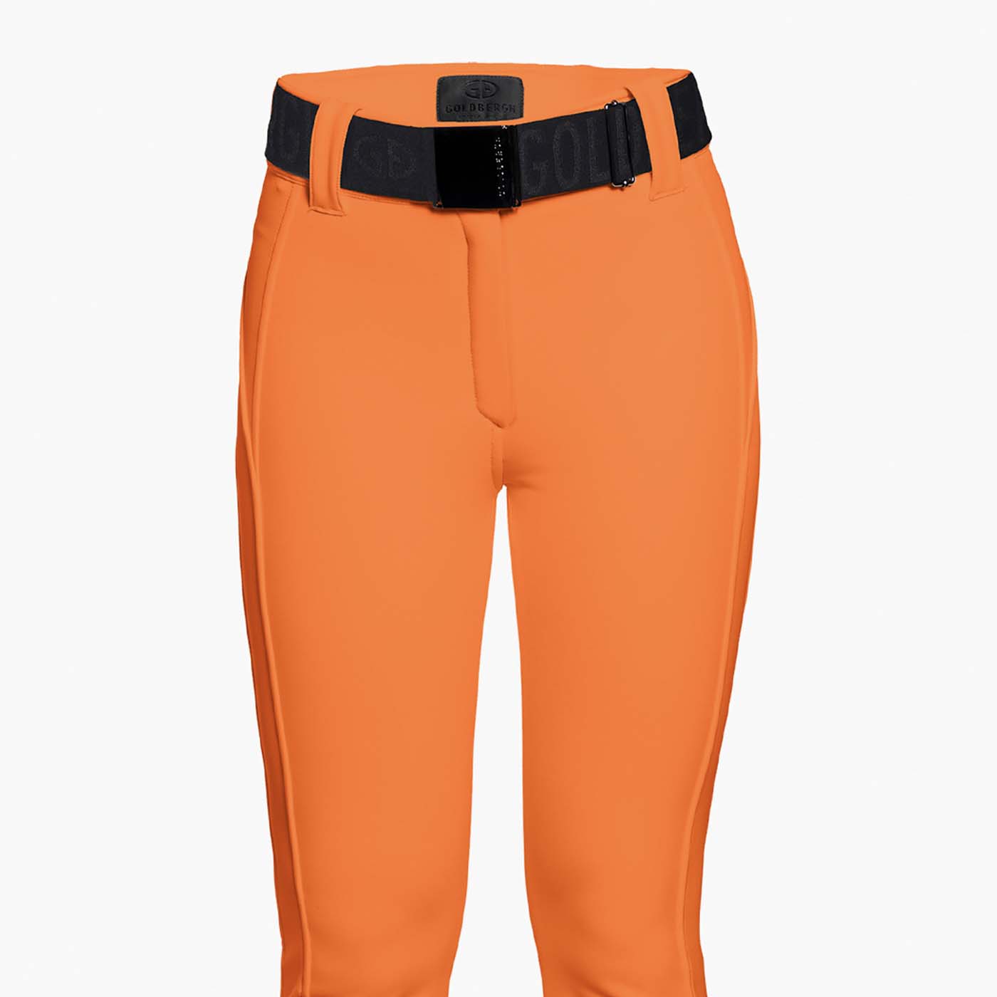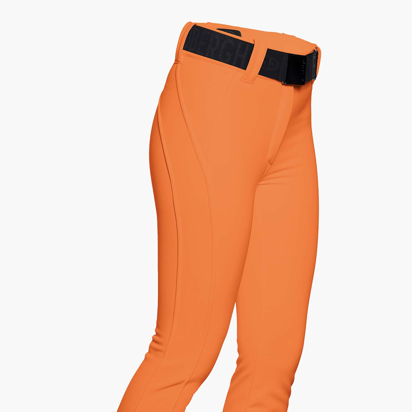 Functional features include a separate belt for an adjustable fit, backside hem zippers for easy boot access, and snowcatchers at the bottom to keep snow out and warmth in. These are the ultimate ski pants for skiers seeking a clean, timeless look backed by premium technical performance.