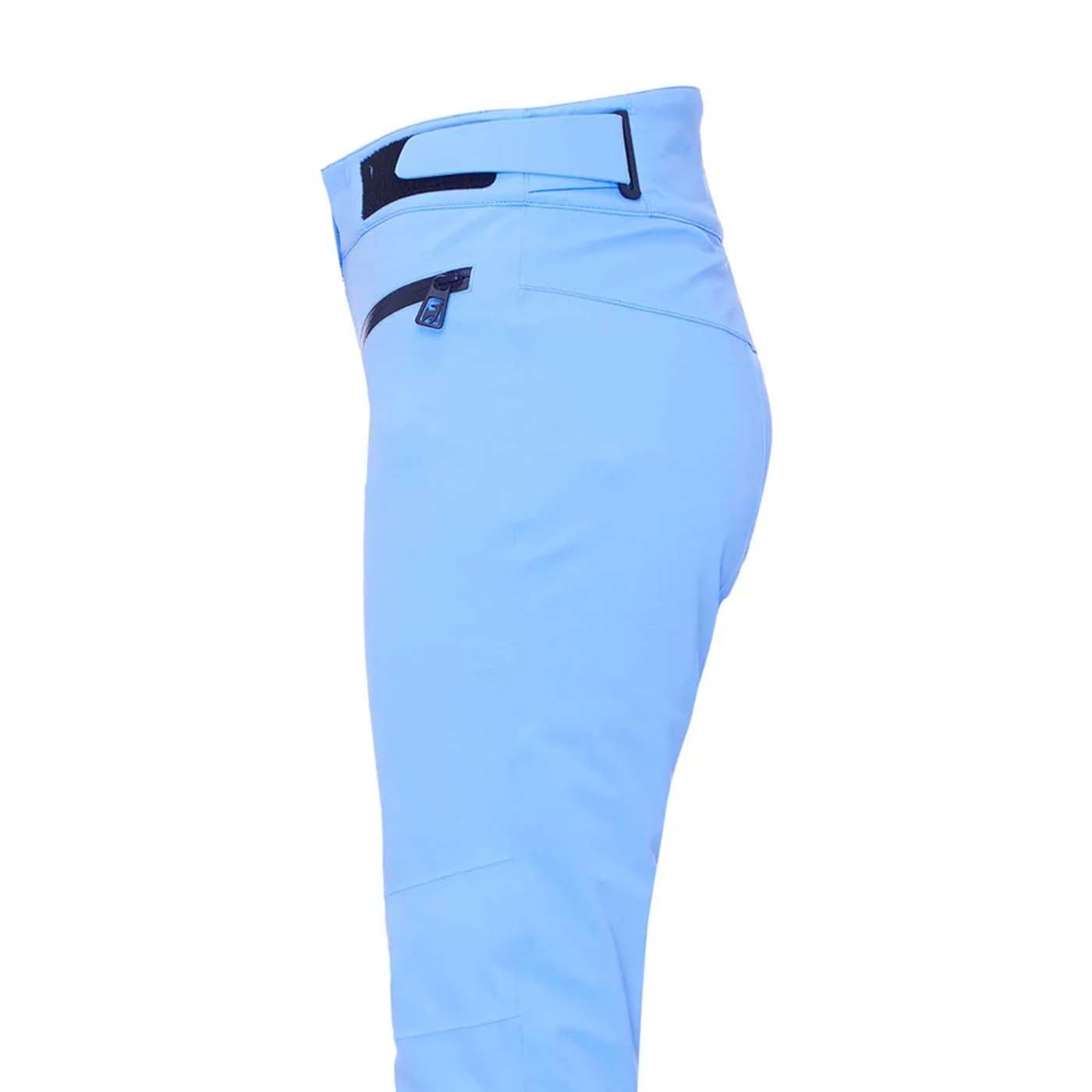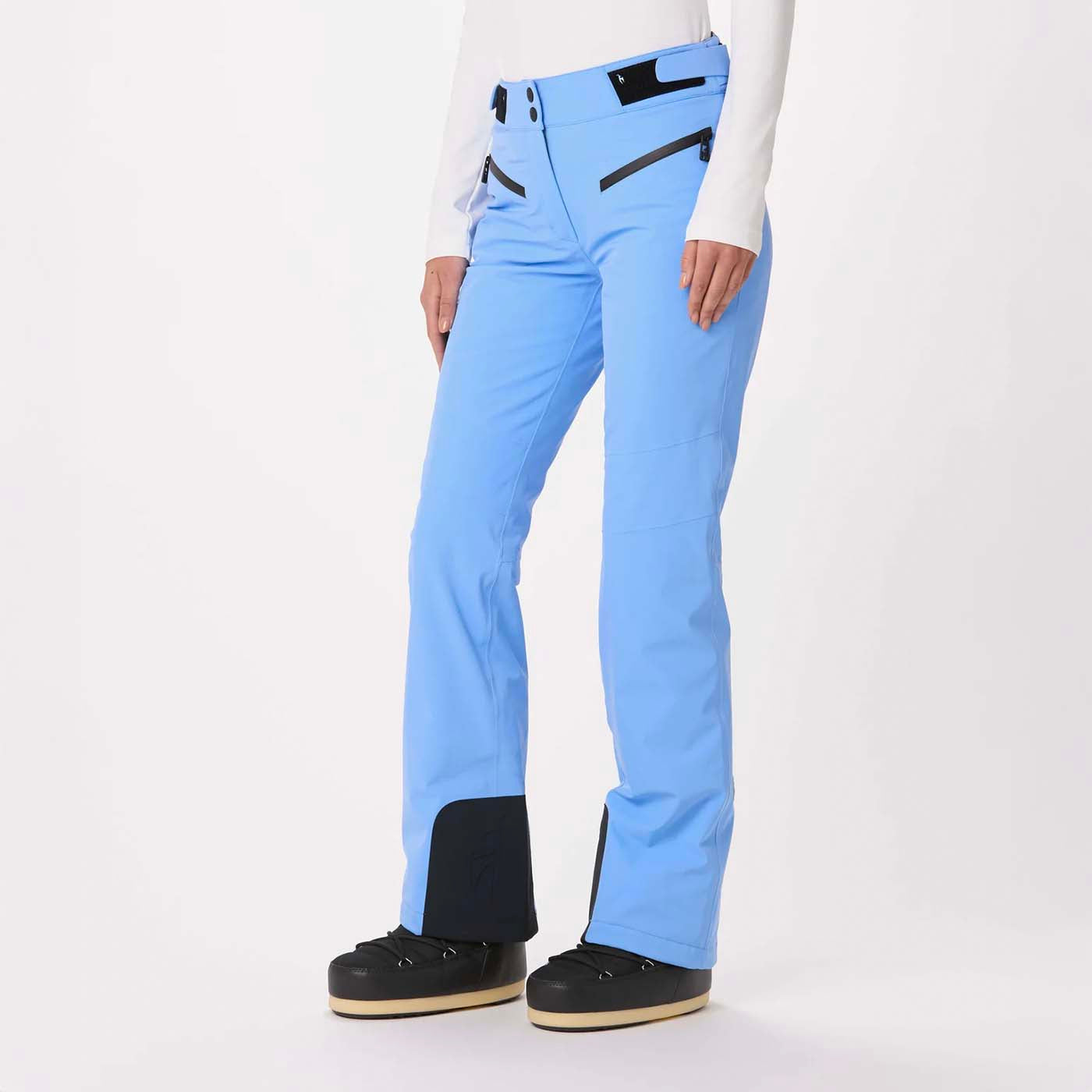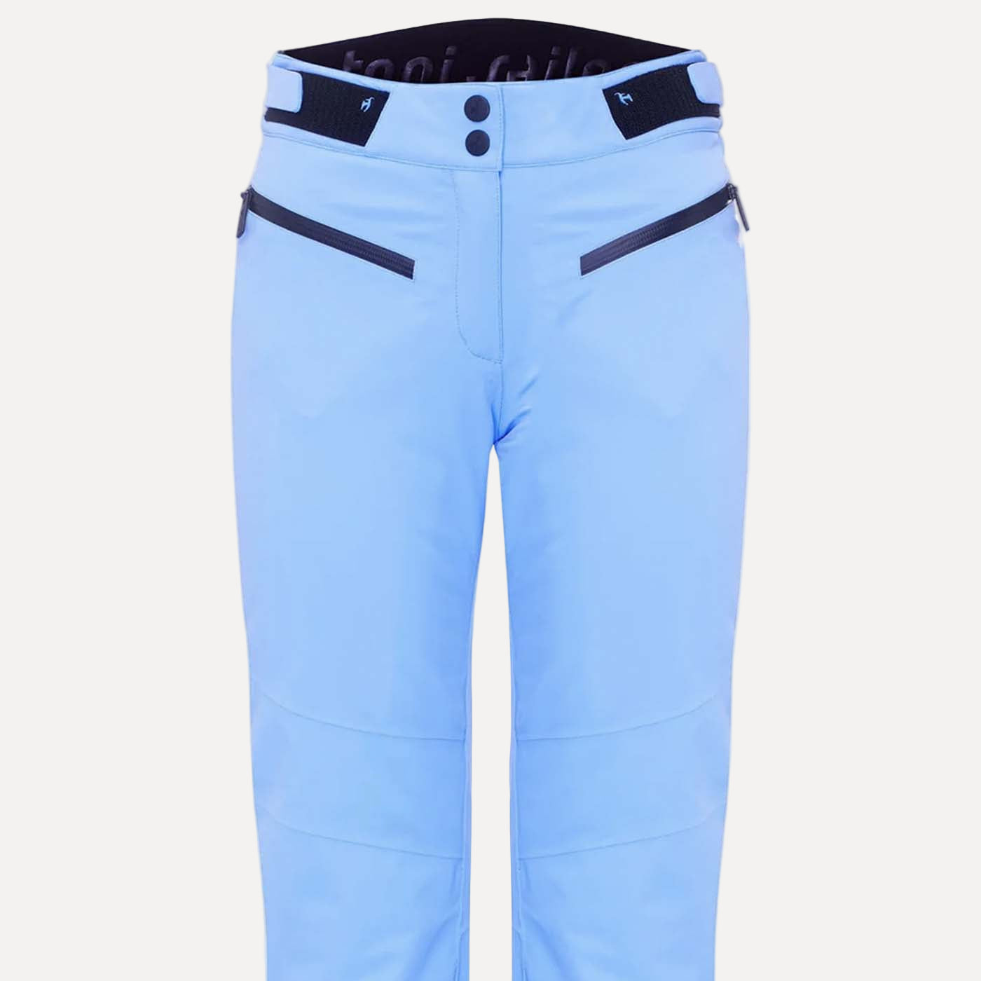 The Amis ski pants are fully technical and completely waterproof, offering an excellent fit and maximum freedom of movement. Crafted from premium Japanese 4-way stretch fabric, they stretch effortlessly in every direction, as does the PU membrane, which adds extra moisture protection. The higher back waistband ensures optimal kidney warmth, while the YKK® AquaGuard® zippers securely seal the two pockets. Thoughtful details include the molded Toni Sailer chamois logo on the edge protection.