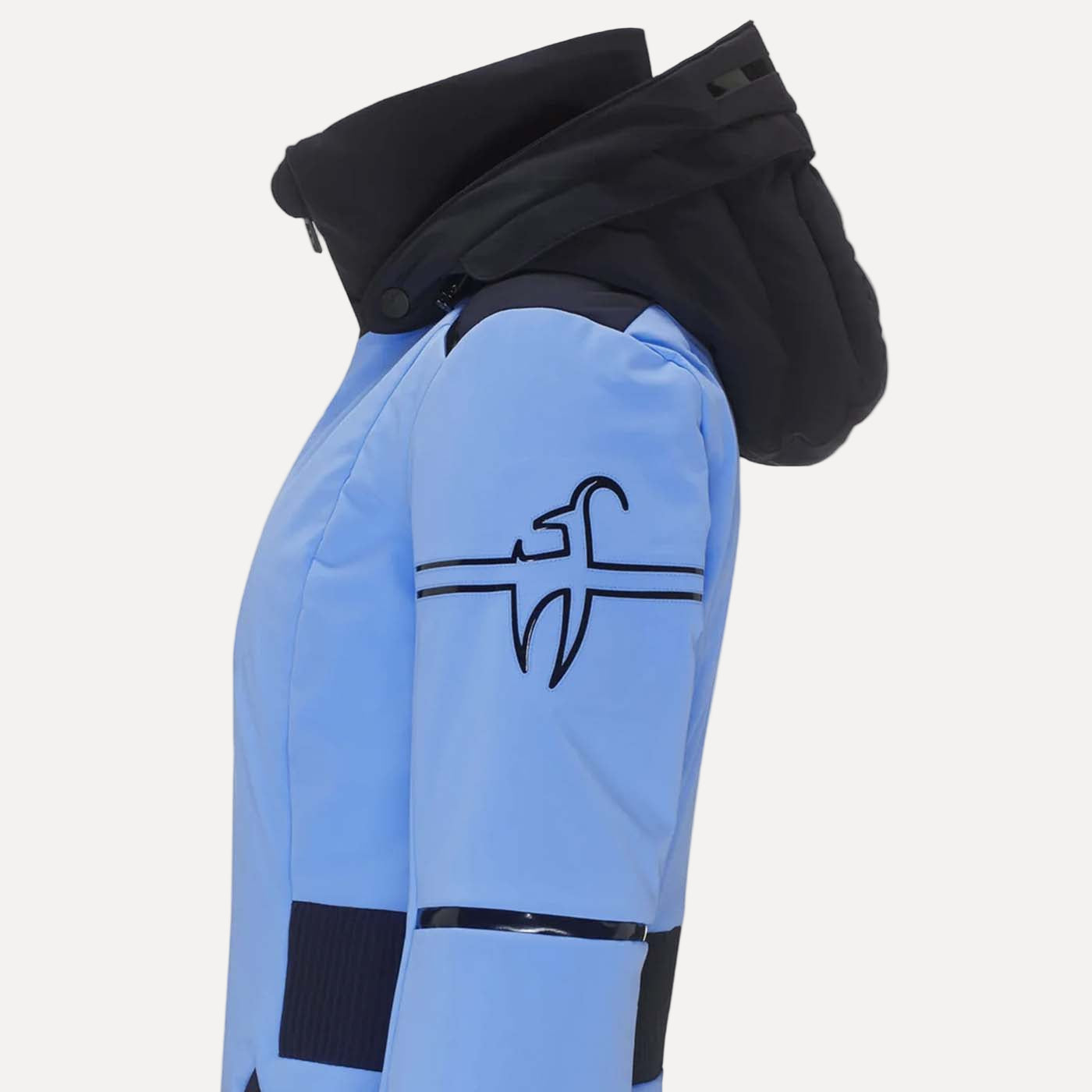 Experience maximum freedom of movement with the Martha ski jacket, one of the sportiest and most technically advanced designs. Crafted from 100% premium 4-way stretch, it delivers exceptional comfort on every descent. PrimaLoft® Gold Insulation Active+ maintains an ideal body climate, making it perfect for dedicated skiers. Sporty stretch ribbing at the waistband enhances the modern Toni Sailer aesthetic, while the updated chamois logo on the sleeve adds a fresh, refined touch.