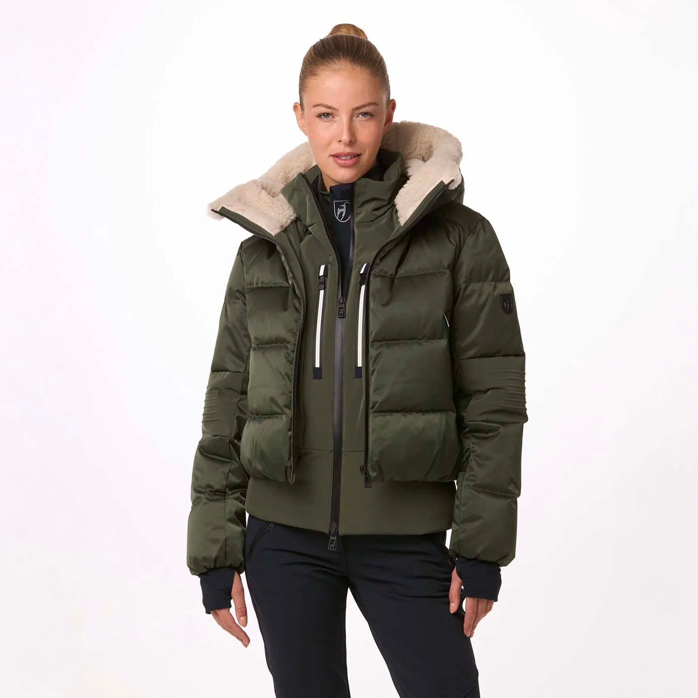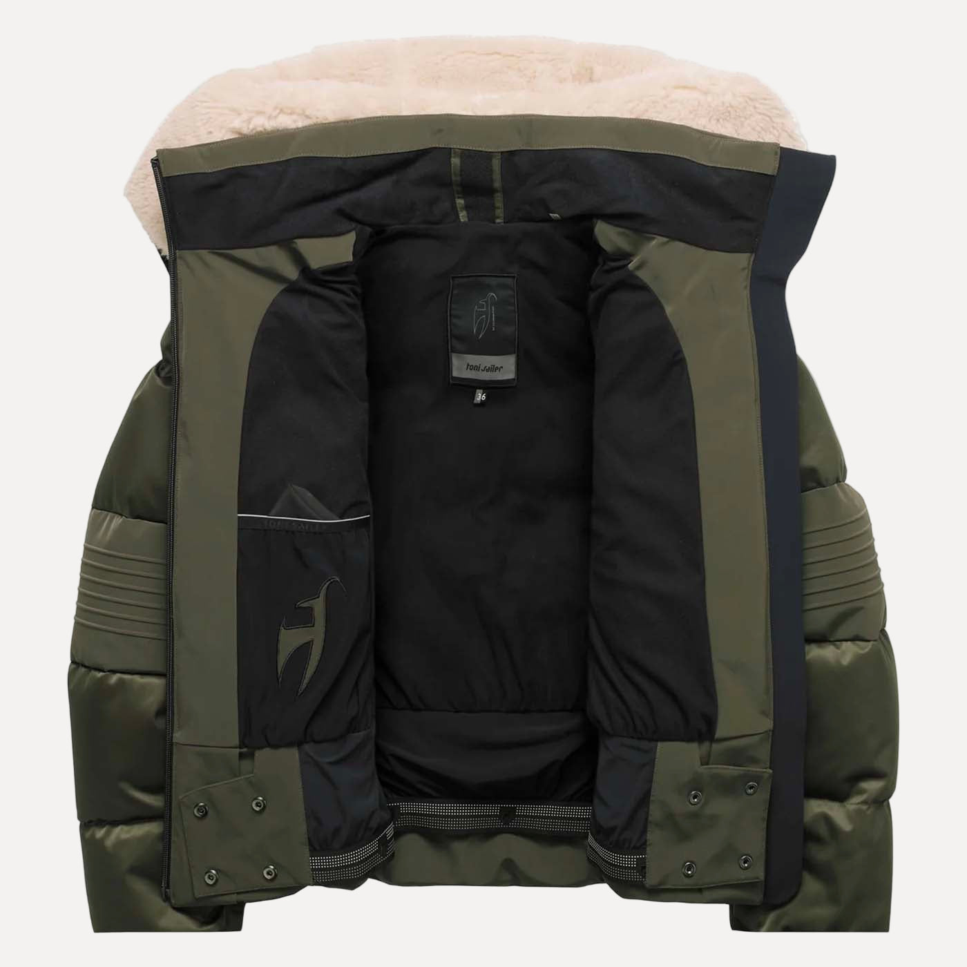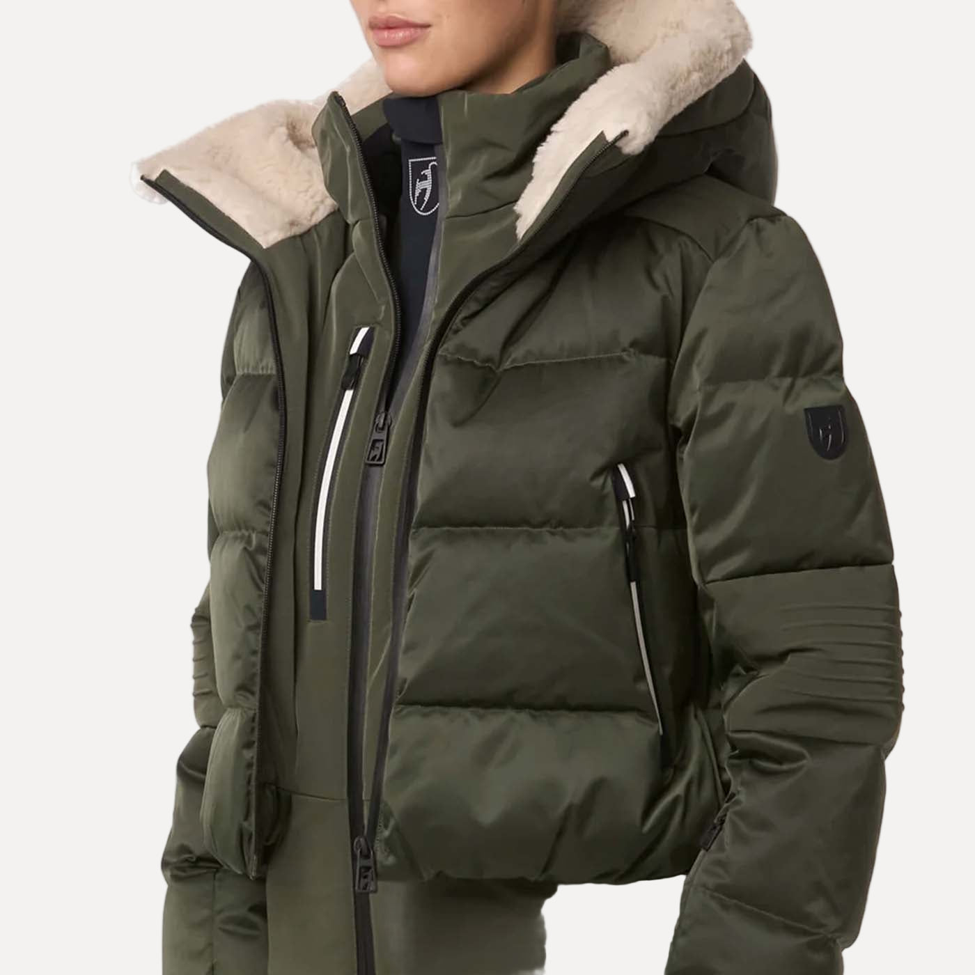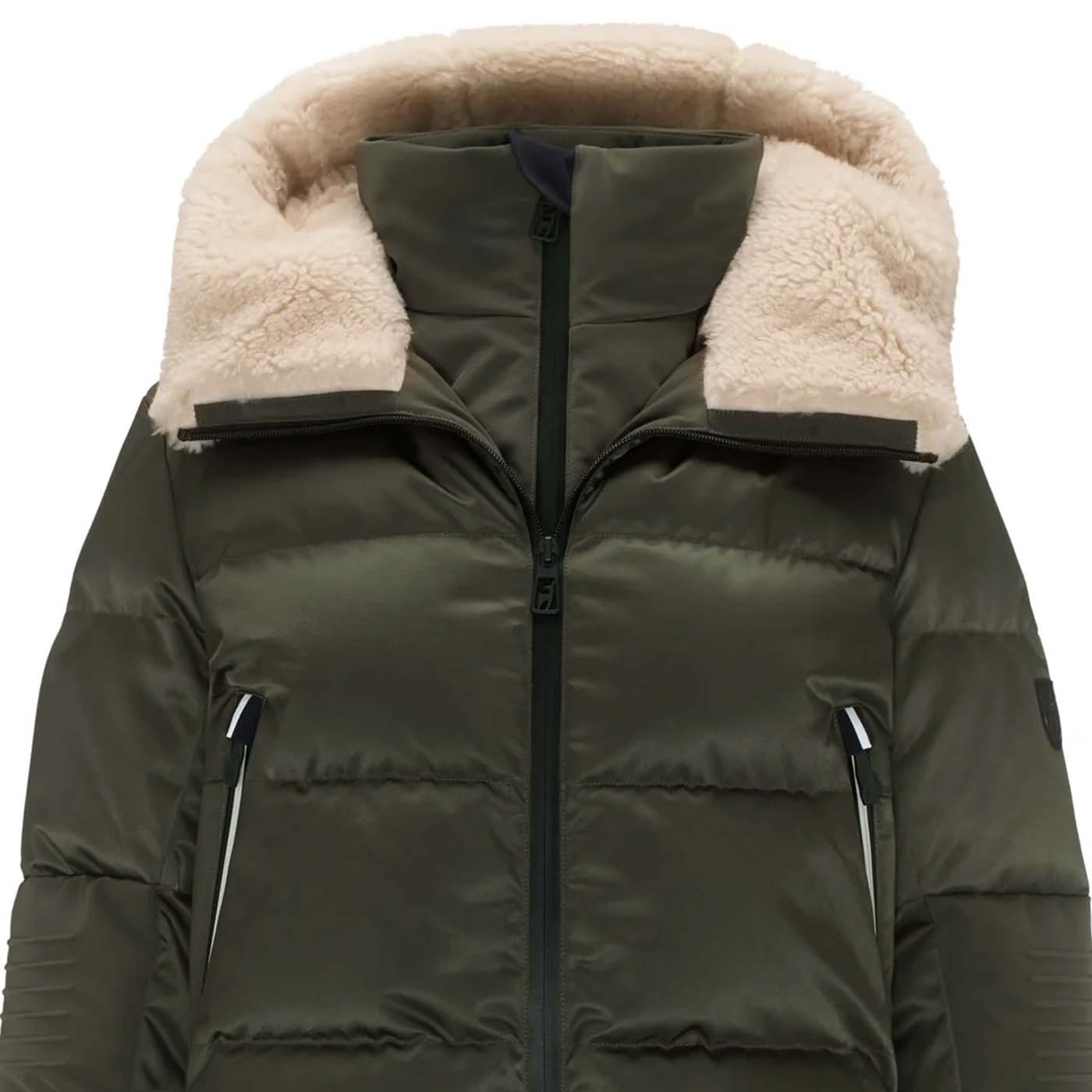 Slopes meet city! The Sasha ski jacket from Toni Sailer is a luxurious 2-in-1 satin puffer featuring a cozy teddy collar for warmth and comfort. Filled with certified 750 fill power down, it keeps you warm on snowy slopes and windy streets. Technical zippers highlight the perfect blend of fashion and function.