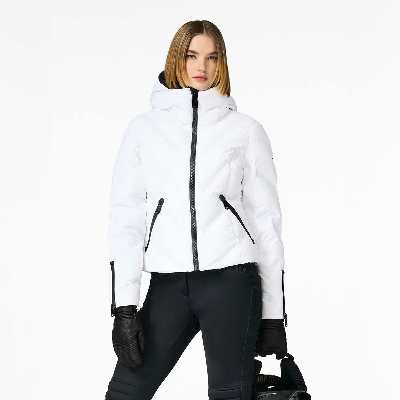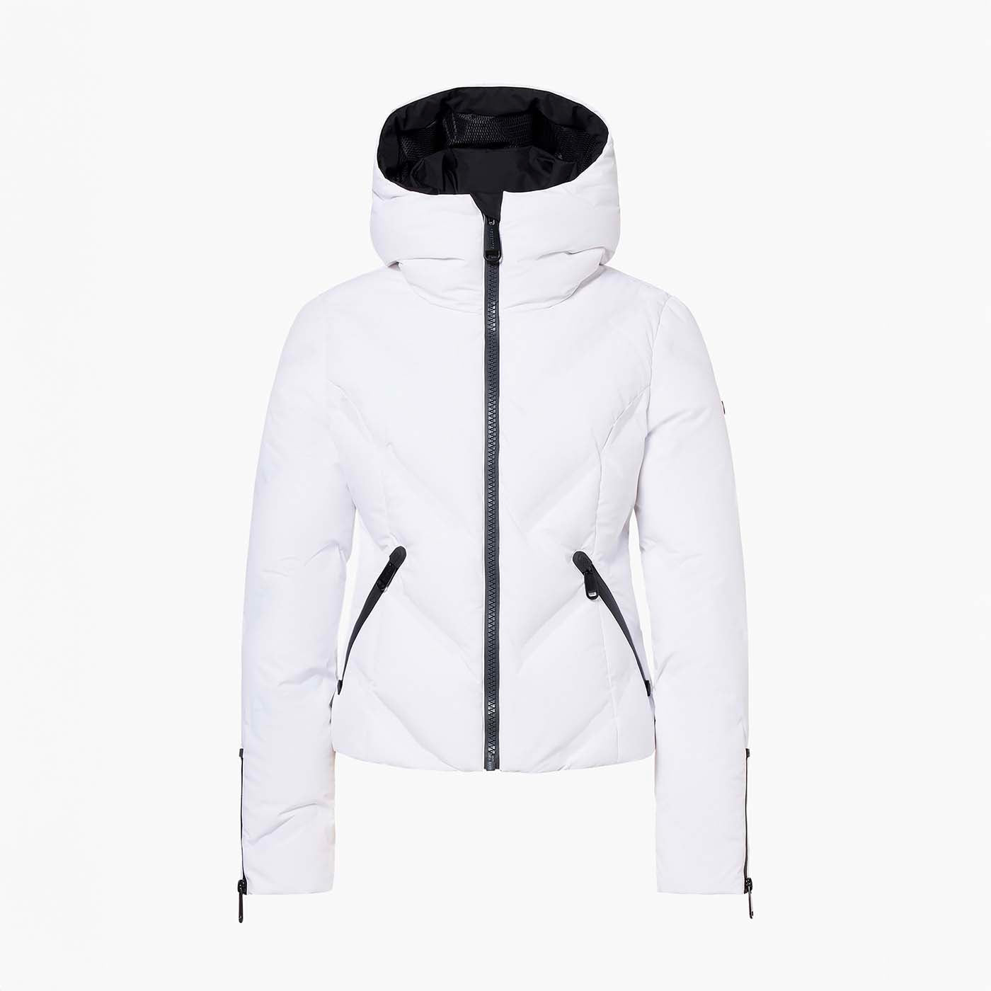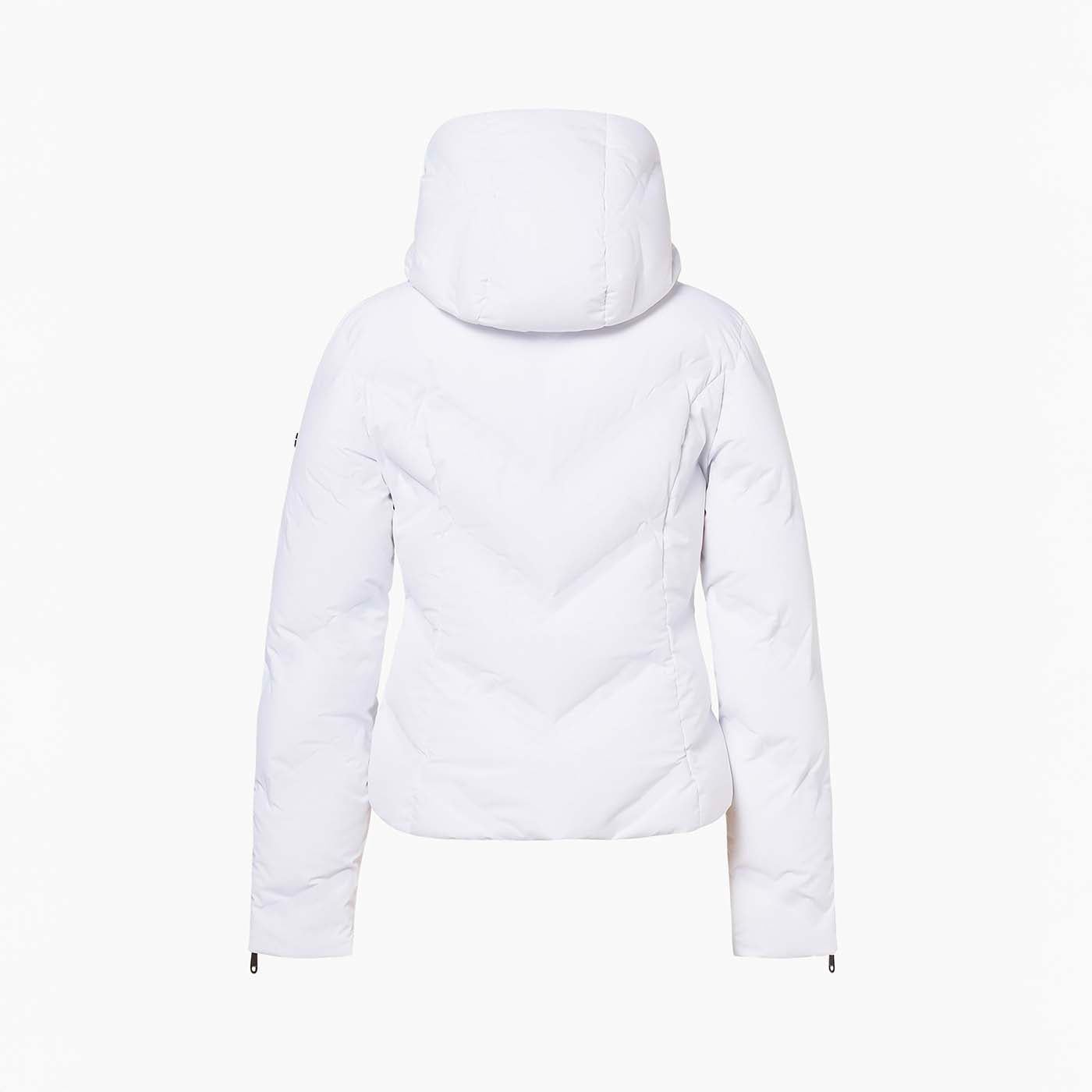 This down jacket with bonded quilting and a hood delivers warmth, comfort, and modern style. Crafted from recycled outer shell fabric with a partly recycled lining featuring an anti-odor finish, it’s insulated with RDS-certified down for reliable protection. The bonded quilting adds a sleek, structured look, while functional details include two outer pockets, two inner pockets, and a sleeve pocket for a ski pass. A fixed hood, detachable snowcatcher, and knitted inner cuffs complete the design for enhanced performance on and off the slopes.