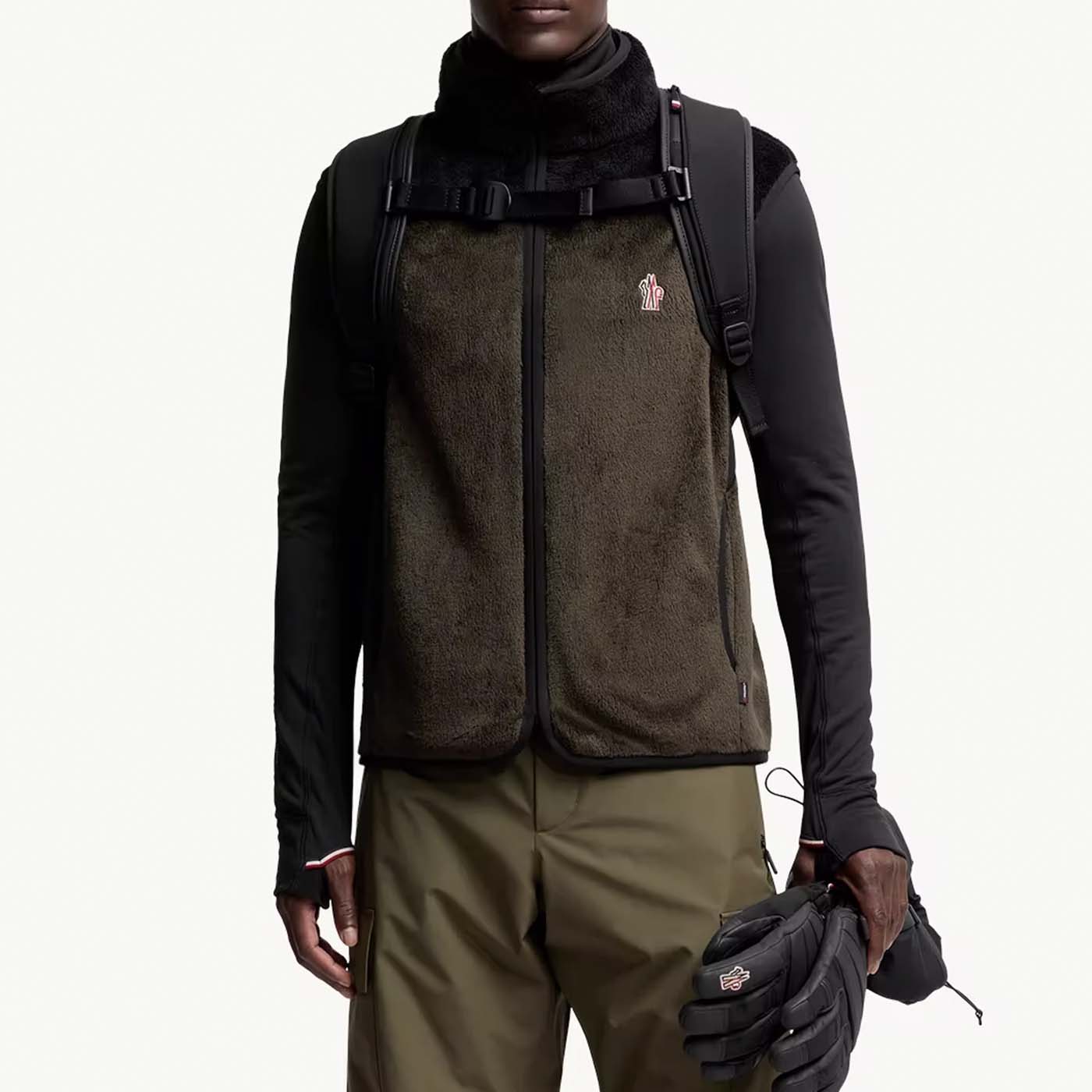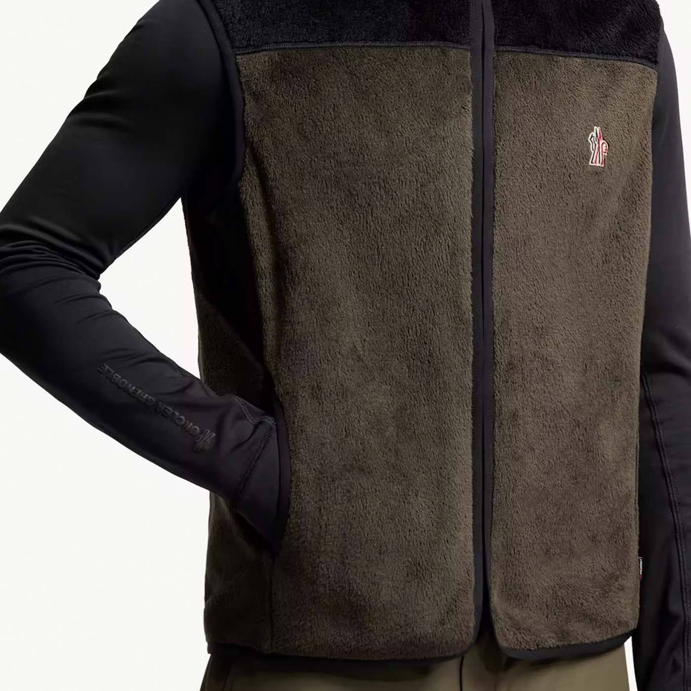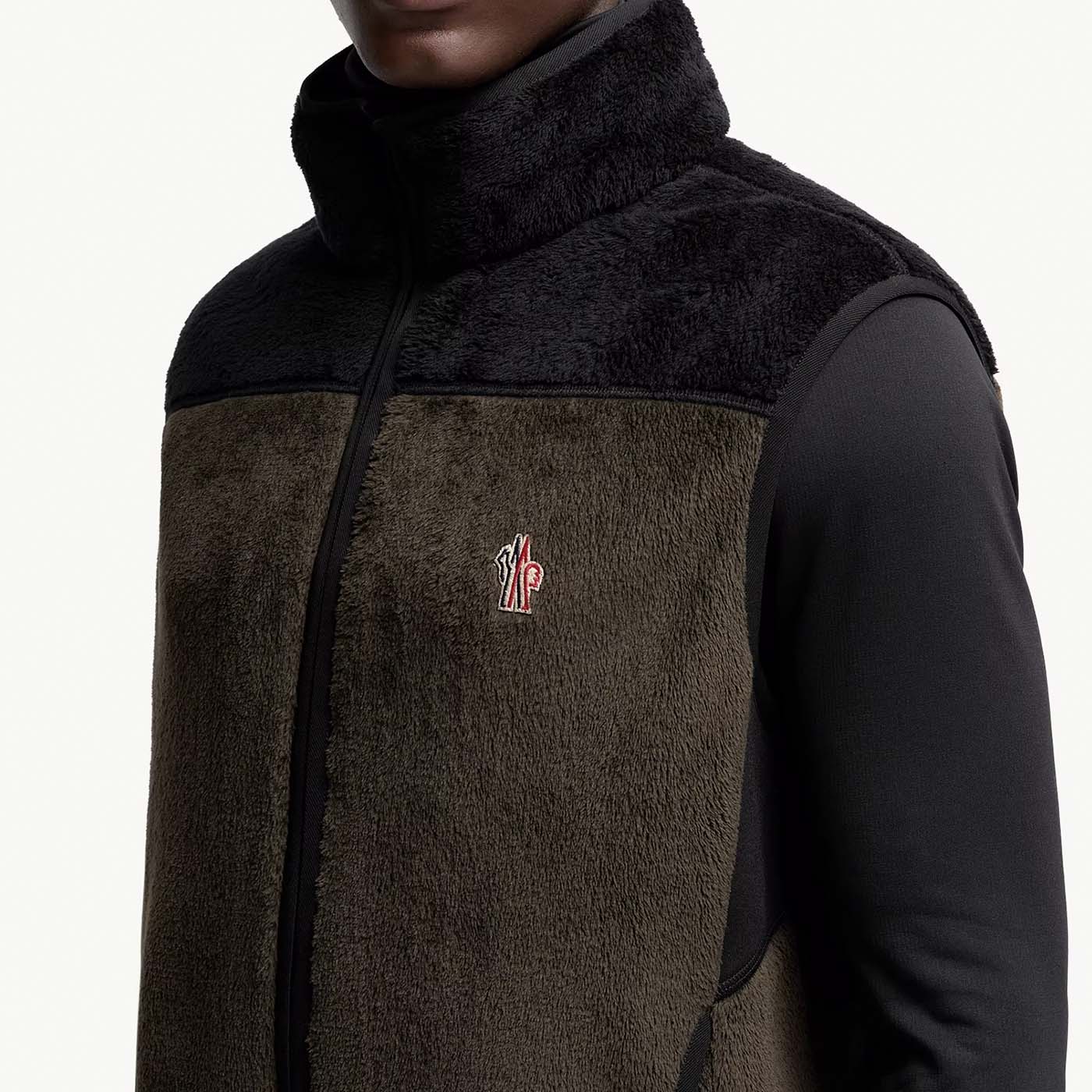 Made to support men during outdoor activities, this Moncler Grenoble fleece down vest delivers warmth and quick-drying comfort.