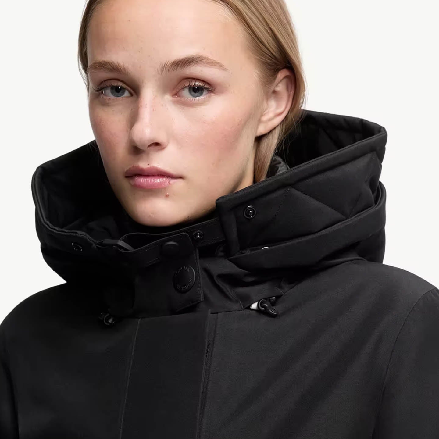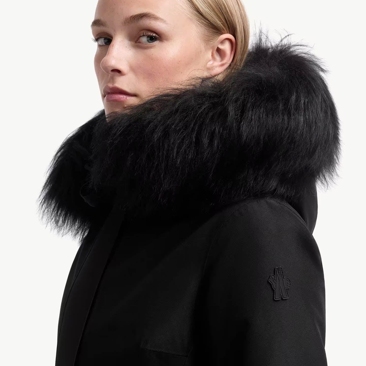 Designed for alpine skiing, the women’s Laplance ski jacket delivers full-weather protection, warmth, and a sculpted, feminine silhouette. Crafted from a 2-layer GORE-TEX canvas that’s fully waterproof, windproof, and breathable, this technical down jacket keeps you dry and comfortable through every turn. Heat-sealed seams and YKK AquaGuard zips add dependable protection in wet conditions, while four-way functionality ensures ease of movement. A detachable shearling-trimmed hood and an adjustable belt allow you to tailor both warmth and shape.