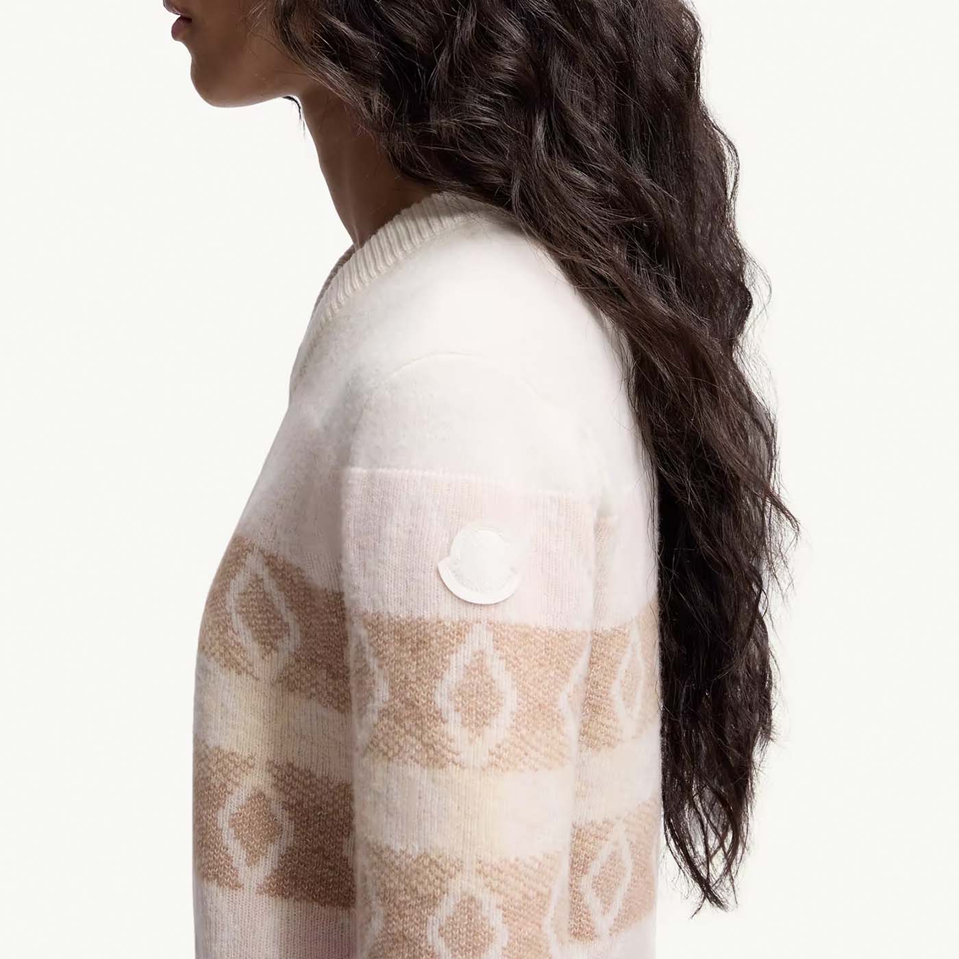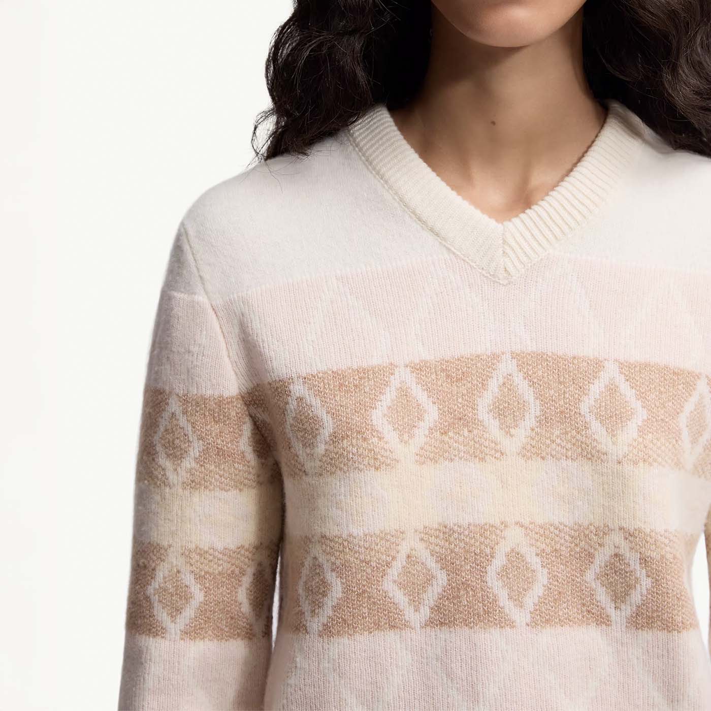 Crafted from plush wool, this women’s sweater is highlighted by a striped rhombus pattern.